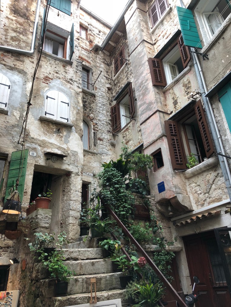 Vi tar båten in till Rovinj stad istället. En mysig stad med många gränder.
