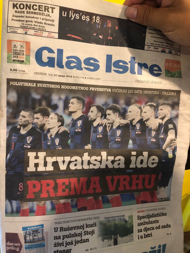 Och så var det ju den där fotbollen…VM semifinal Kroatien-England. Vi satt på Campingen och tittade på matchen på paddan. Det visade sig ganska snart att vi hade fördröjning på vår sändning. Vi hörde jublet innan vi sett målen… Matchen slutade 2-1 till Kroatien efter förlängning, så vi ”måste” alltså se en match till. Finalen mot Frankrike på söndag.