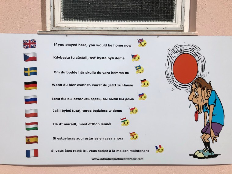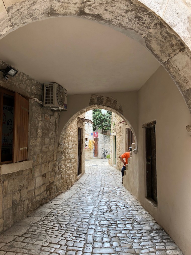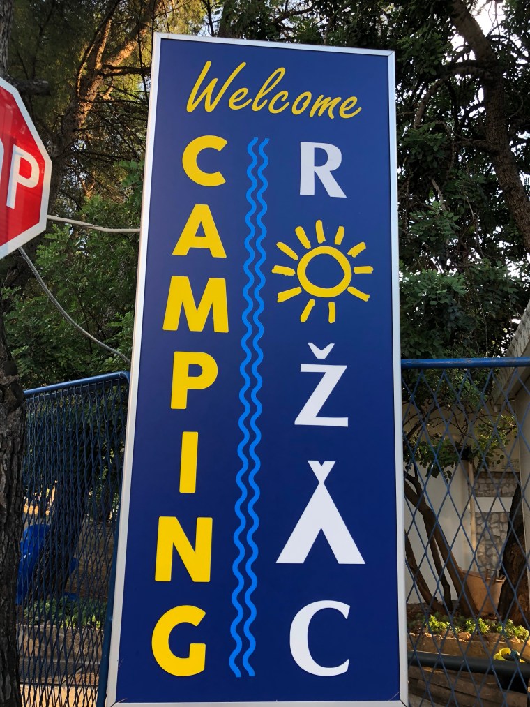 Nära till toa, reception, bad, brödbutiken och grannarna. Tråååångt! På ett ställe hade en husbil fått vända hjulen på snedden för att grannen skulle få in draget på husvagnen. Ett av de sämre ställena vi stått på. Inte ens öronpropparna kunde dölja ljuden från bilar, flygplan och människorna runt omkring. Ingen bra sömn denna natt, men Trogir var fint.