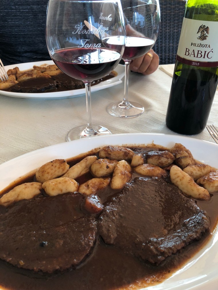 Våran sista middag i Kroatien äter vi lokal mat Pasicada med Njoki och dricker Babic, lokalt vin.