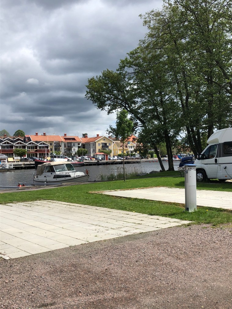 Vi åkte direkt till den andra ställplatsen Sundsängen med samma ägare 300m längre bort. Det är en grusplan, men passar oss rätt bra.