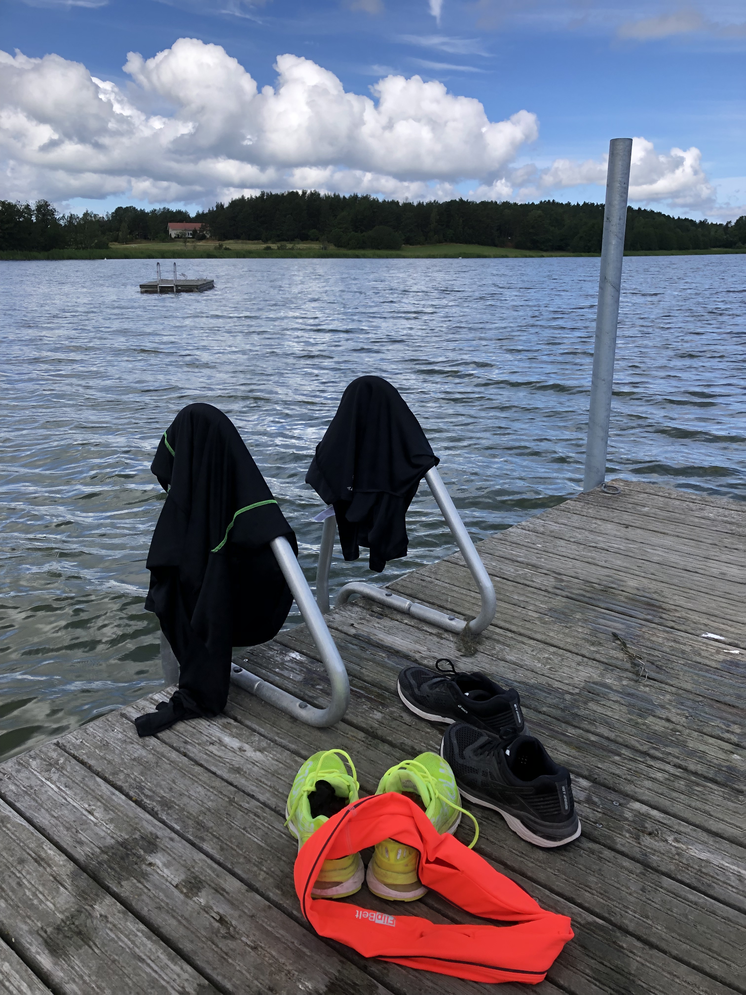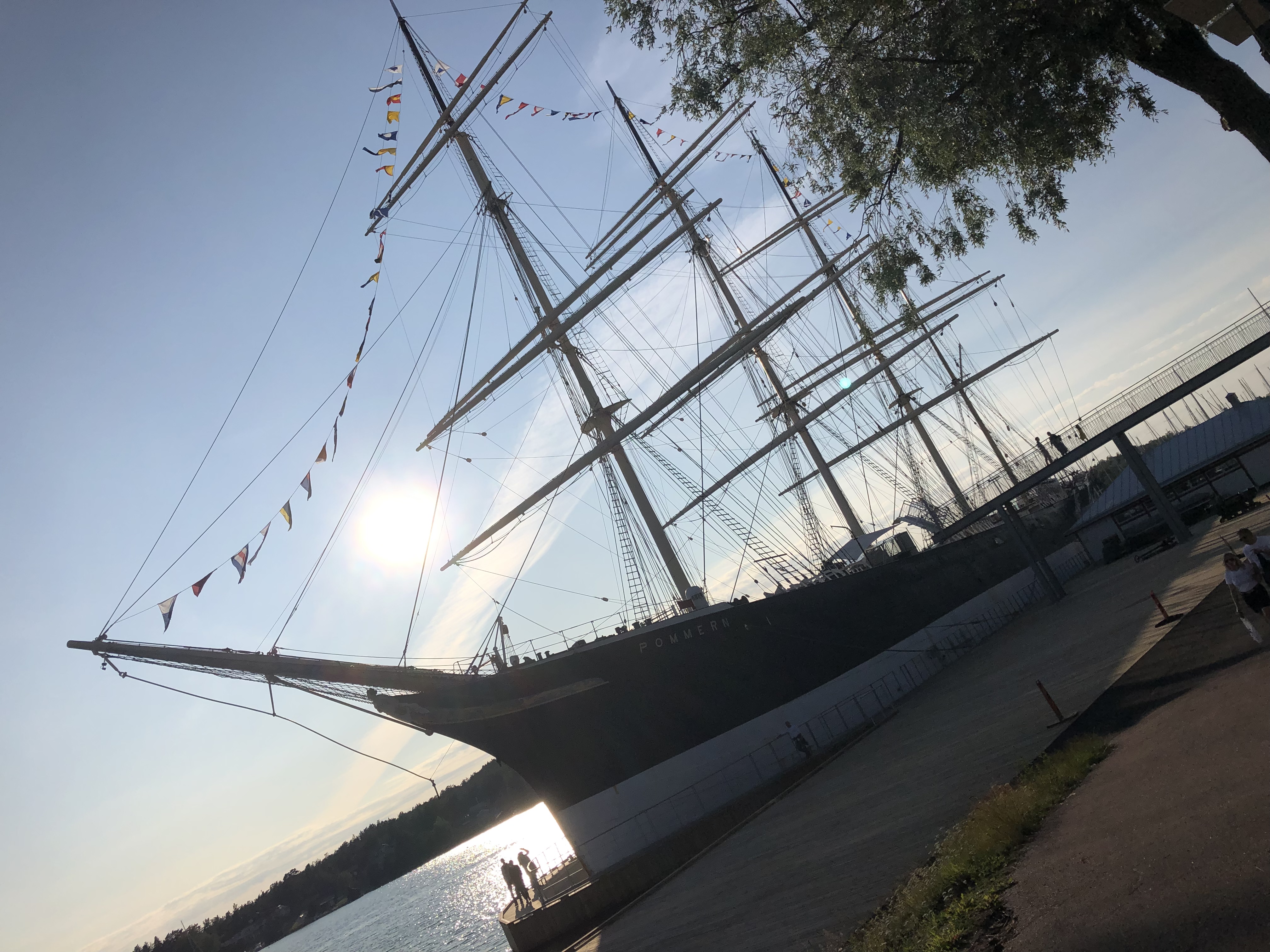 Vi hade inte planerat något alls, så när vi kom fram åkte vi mot Lumparland. Mest för att det namnen lät roligt och att vi skulle kunna åka ut på öarna utanför. Vi kom fram på natten och parkerade på en plats vi tyckte var lämplig. Det visade sig att vi parkerat vid Ålands äldsta kyrka. Vi såg oss om i omgivningarna (med löparskorna på).
