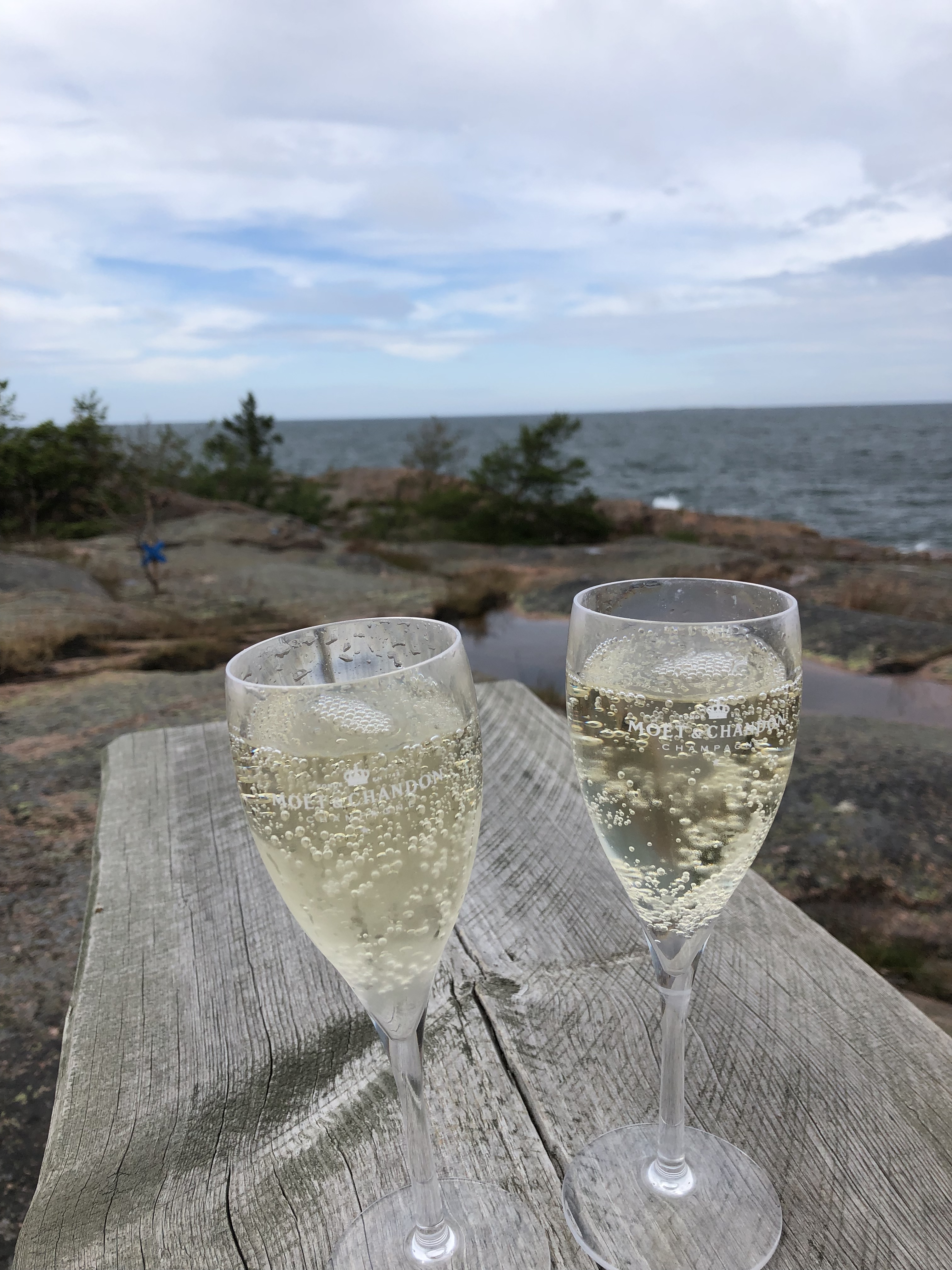 Havsvidden ligger på norra Åland och är kargt med granitklippor. Naturen är häftig och vädret kan skifta snabbt här. När vi kom till restaurangen såg vi inte havet utanför för all dimma, men det ändrade sig snabbt.