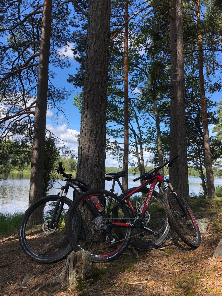 Vi hamnar i Högbo Bruk, som är en av våra favoritplatser. Tanken var att sova några timmar, kanske ta en sväng med cykeln och sedan åka vidare, men det är ju så trevligt i Högbo Bruk. Vi cyklade, hyrde kanot och tog en tur på sjön Öjaren.