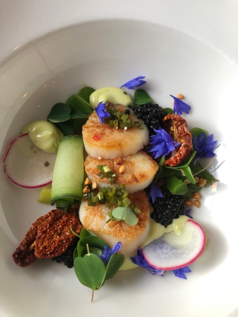 Pilgrimsmusslor och oxfilé och när vi kom till desserten glömde jag att fotografera.