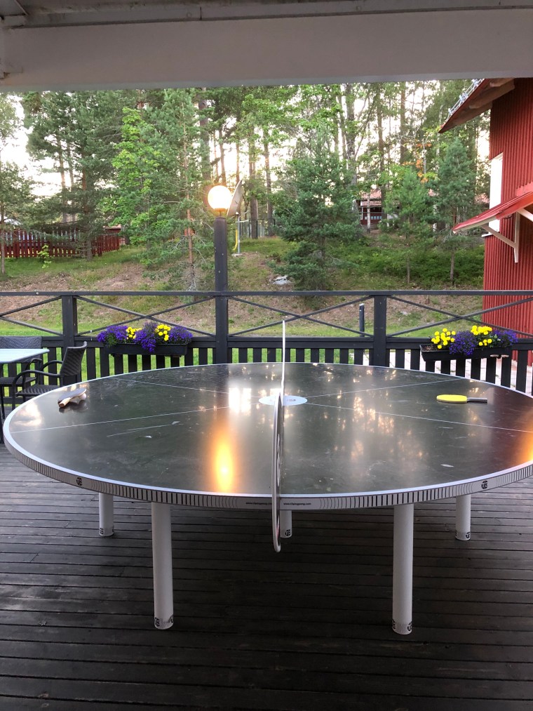 Mätta och belåtna var det dags för den obligatoriska pingisen. Vi är nog jämndåliga, men kul var det.