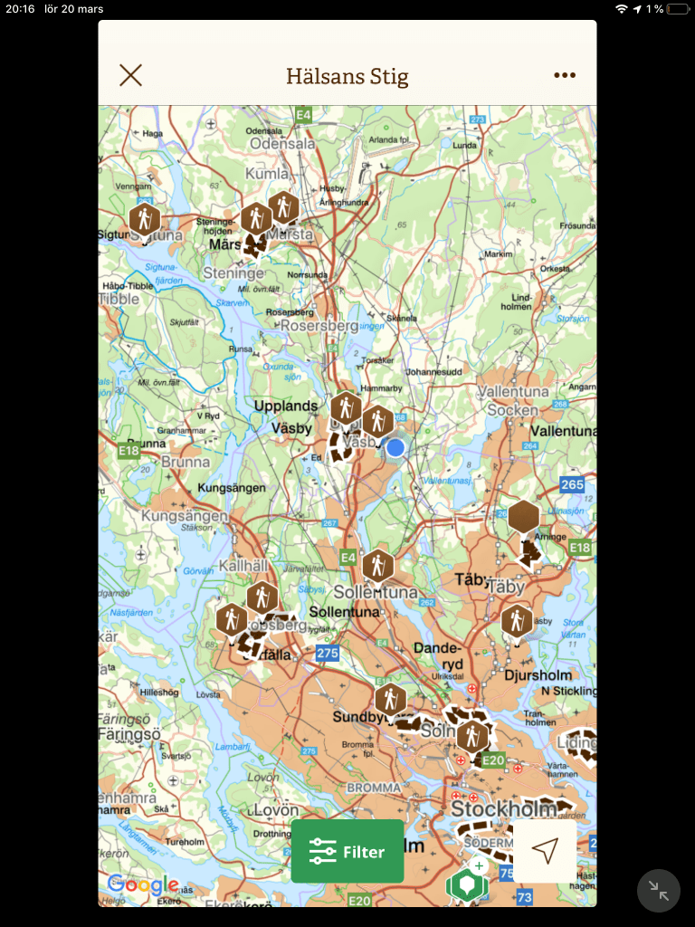 Naturkartan (där du kan ringa in ett område du vill besöka och välja vad du vill göra. Vi väljer naturreservat, terränglöpning och vandring)