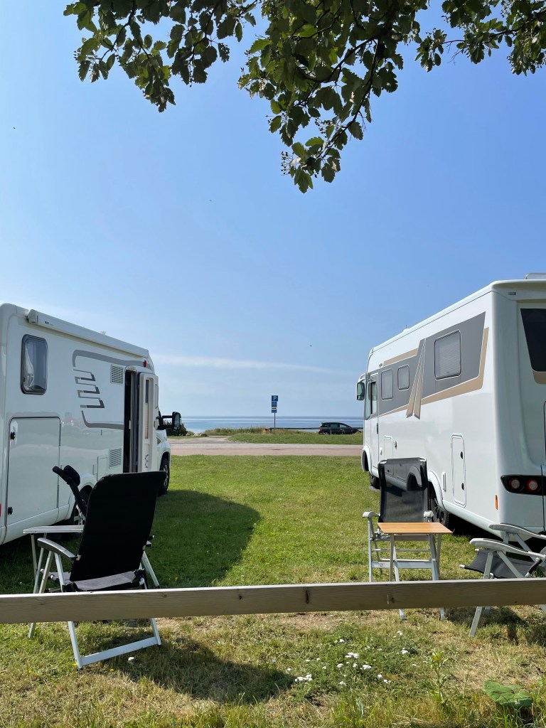 Vi kommer fram på kvällen och åker till ställplatsen vid marinan där det var fullt. Åker vidare till ställplatsen vid Reningsverket (som var trevligare än det låter och vi insåg även att vi tyckte att den kändes trevligare än marinan) Ställplatsen låg efter vattnet och var cykelavstånd till Ystad. Fick sällskap av syster & svåger på vägen också.