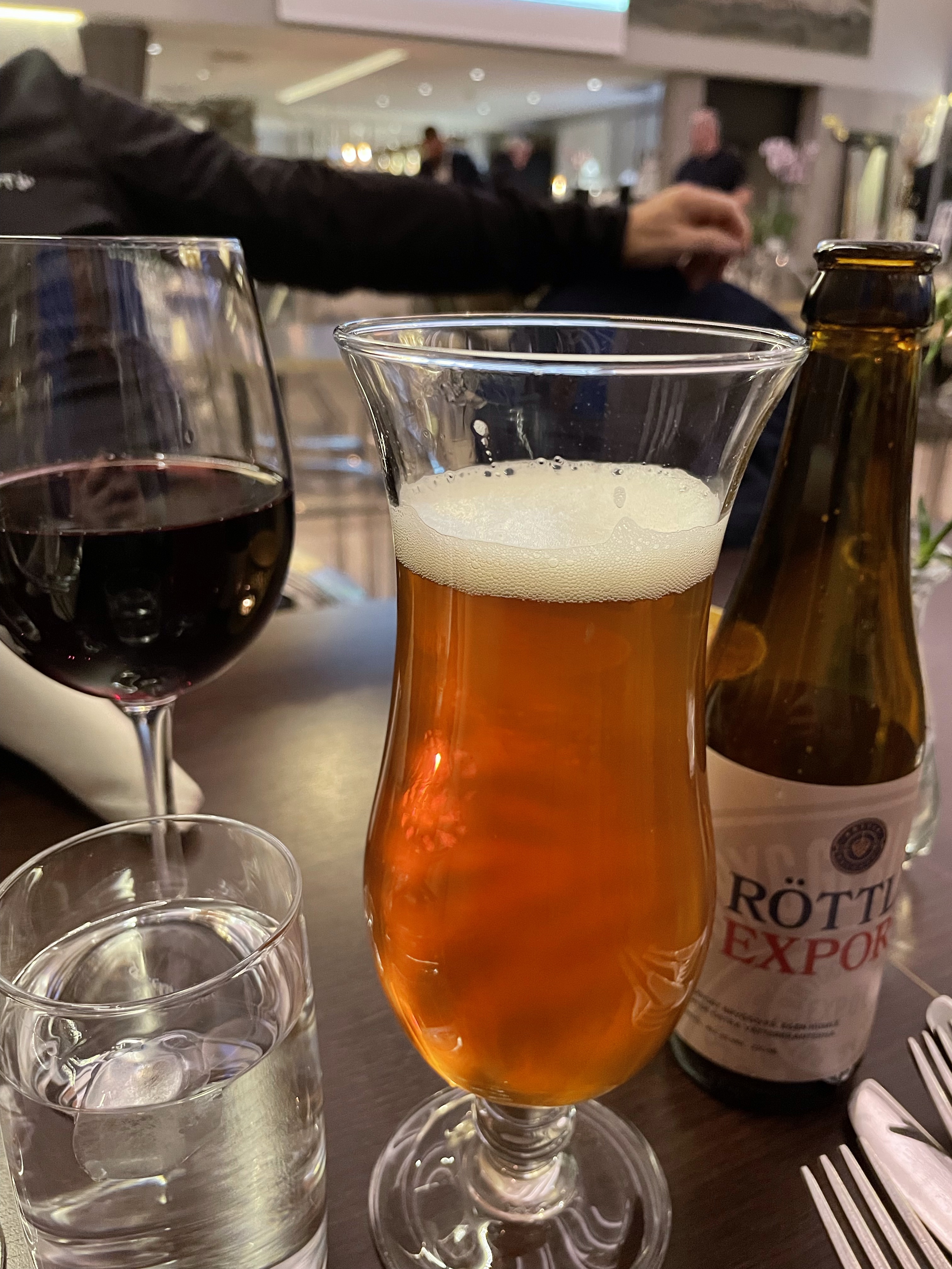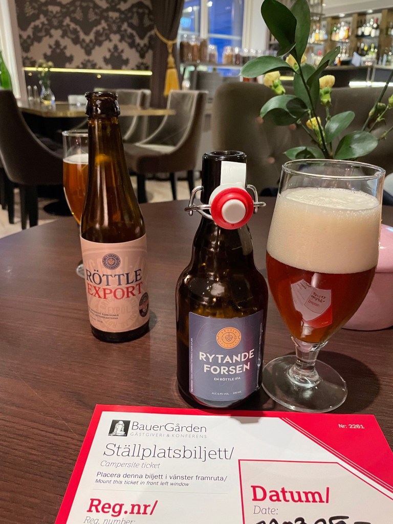 Vi gick till Restaurangen och betalade ställplatsen och tyckte även att vi förtjänat att ta seden dit vi kom med en lokal öl. Personalen var väldigt trevlig. Det går även att beställa en matkasse och frukost för avhämtning.