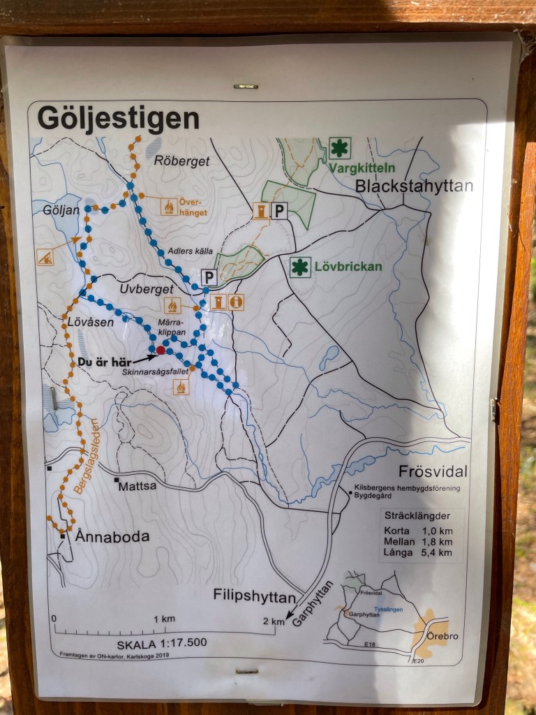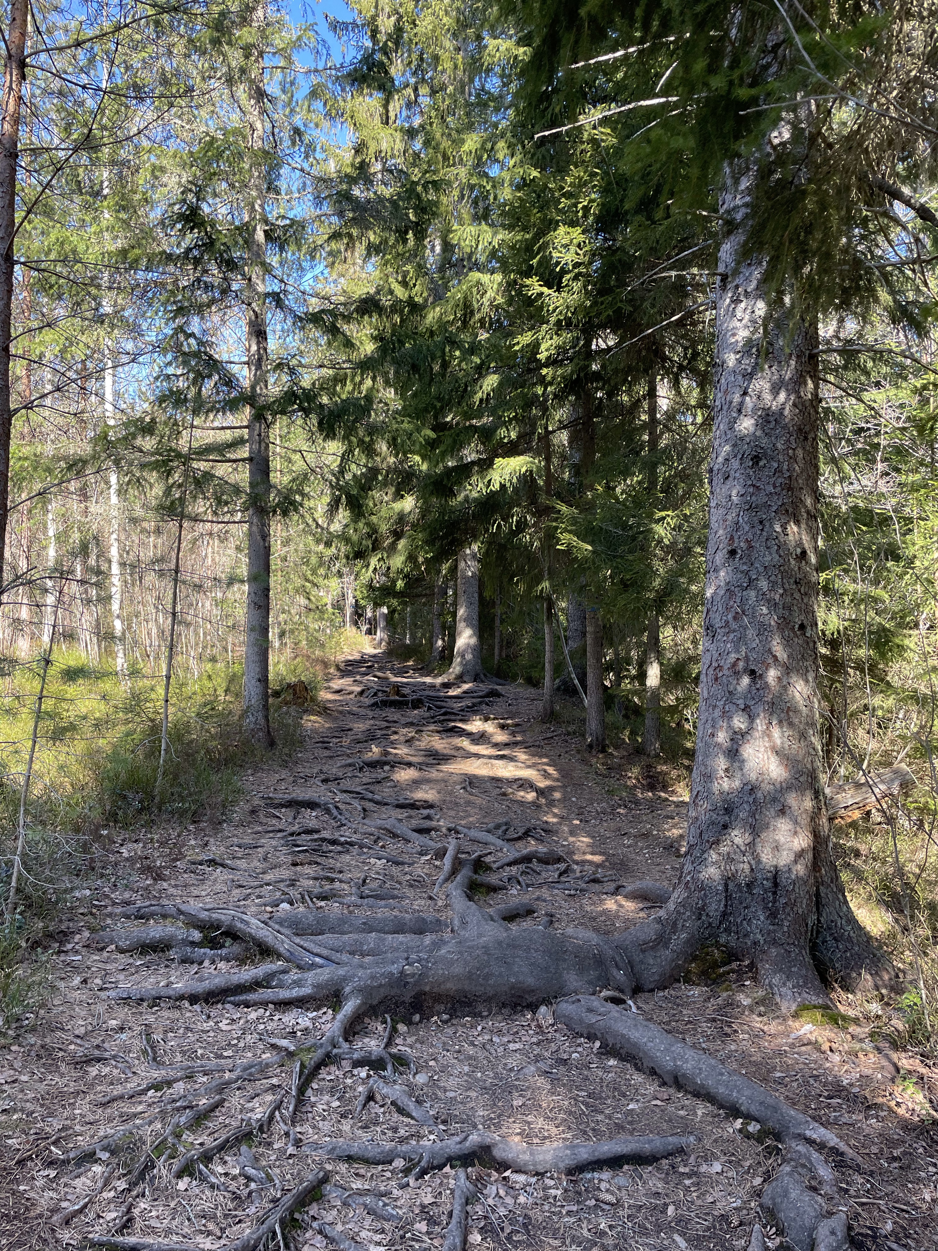 Vi sprang grusvägen ända ner tills det kommer en stig på vänster sida som ansluter till Göljestigen där vi direkt tar vänster.