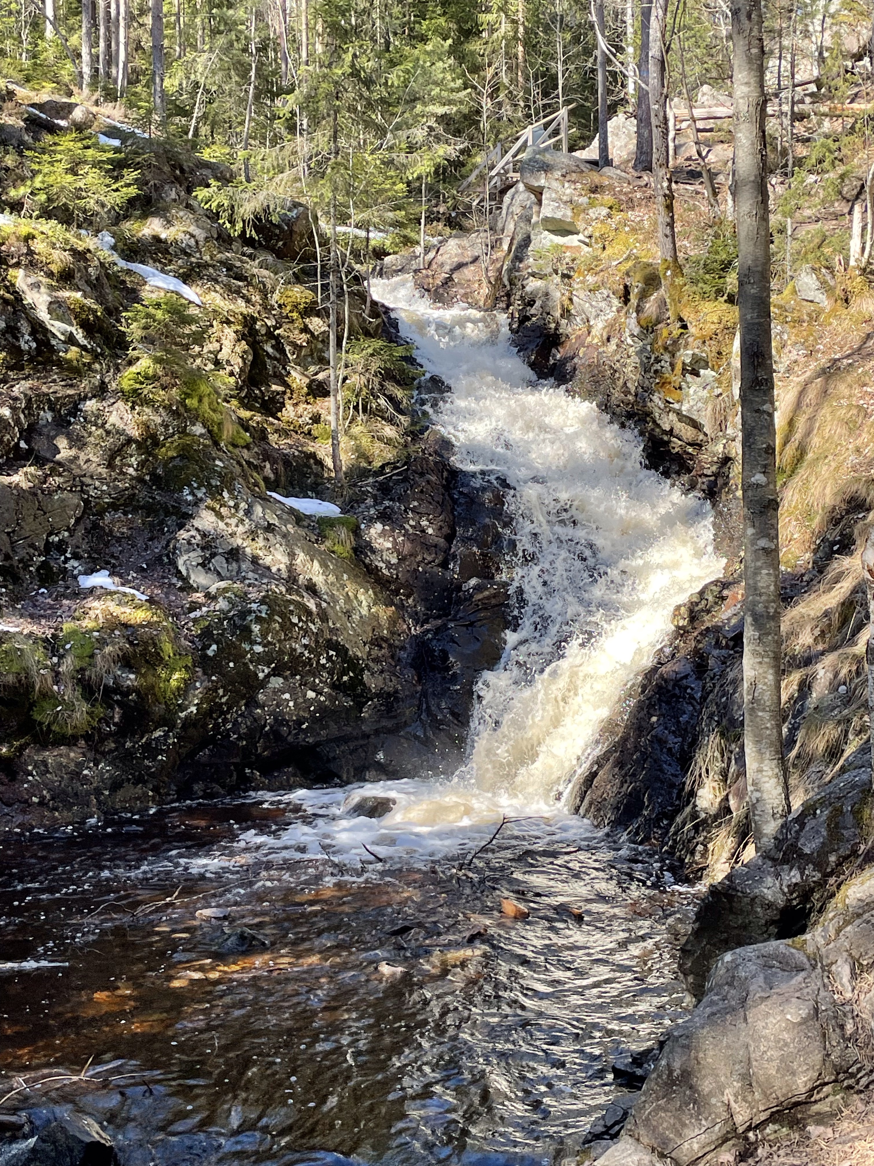 Vattenfallet kan nås med en kortare promenad, vilket gör platsen perfekt för barnfamiljer eller om man inte vill eller kan gå så långt. Det finns flera rastplatser med möjlighet att göra upp eld.