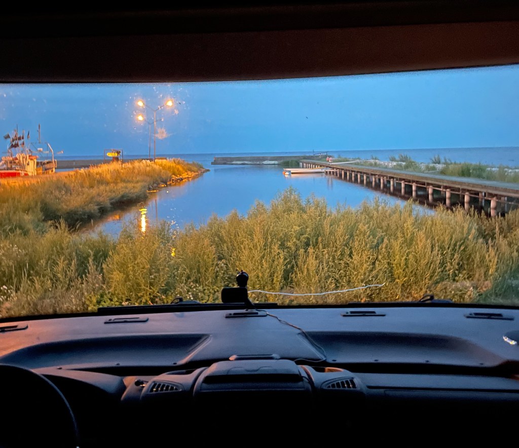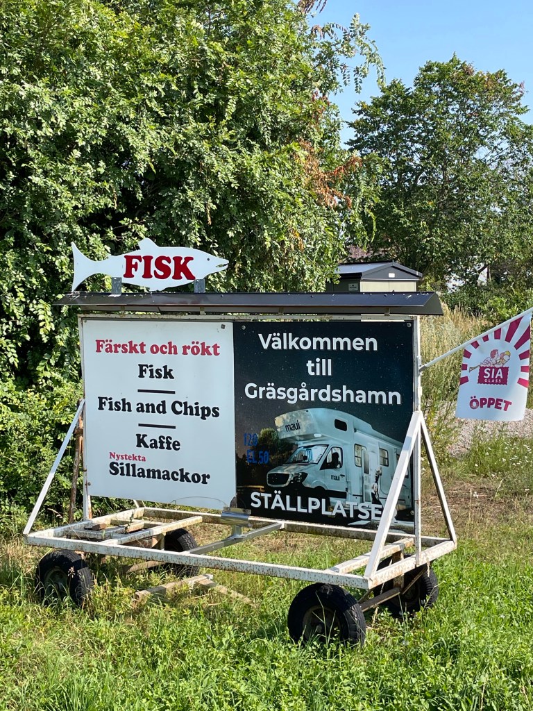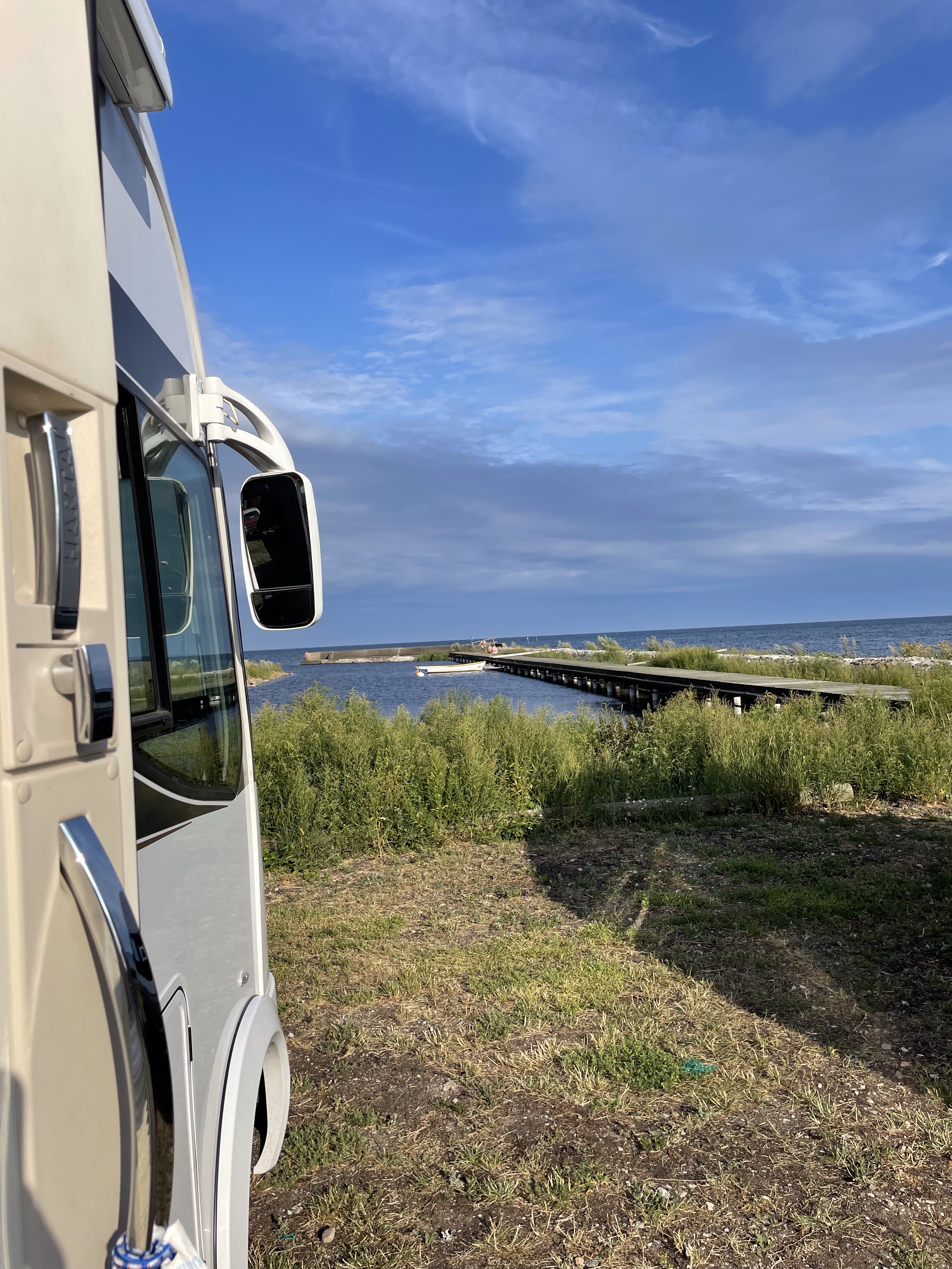 Vi hamnar till slut på Gräsgårdshamns ställplats. I appen ställplatser hade platsen fått rätt dålig kritik. Vi var sena och tänkte att det kan nog duga för natten om vi får plats.