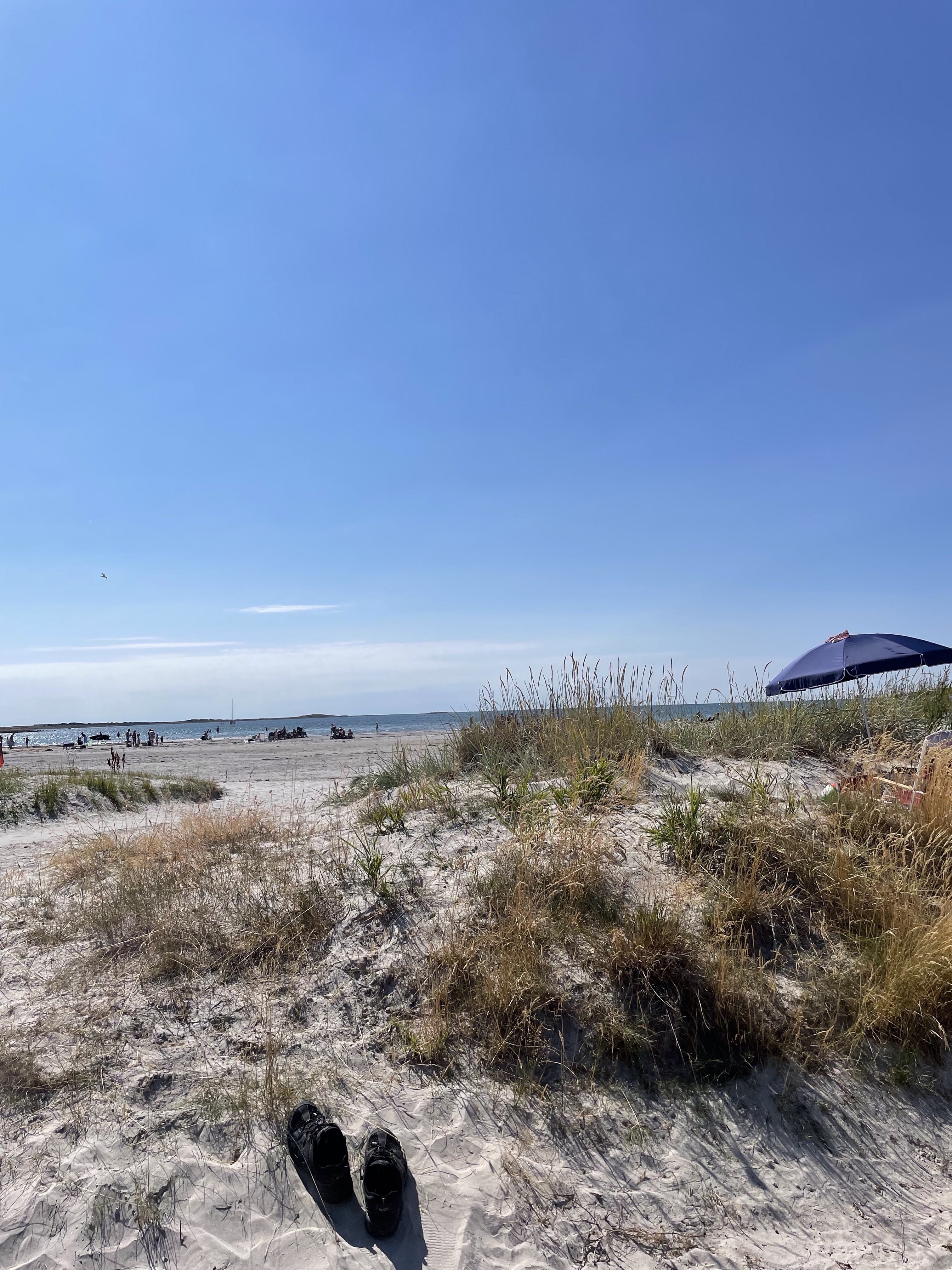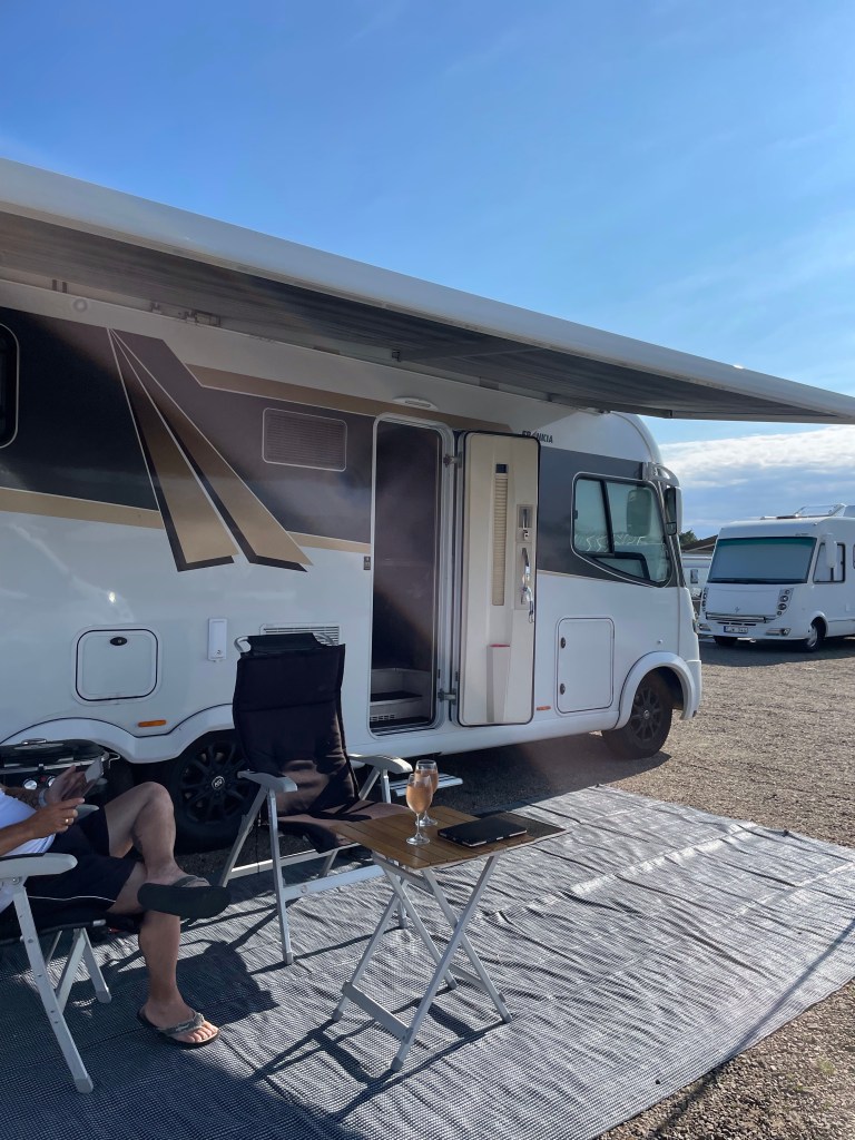 Vi kommer fram en dag tidigare och tänker att vi kanske kan stå någonstans antigen på Campingen eller i anslutningen, men killen i ”repan” säger att det är fullt och tipsar om badplatsen. Vi letar oss mot badplatsens parkering och hamnar i…