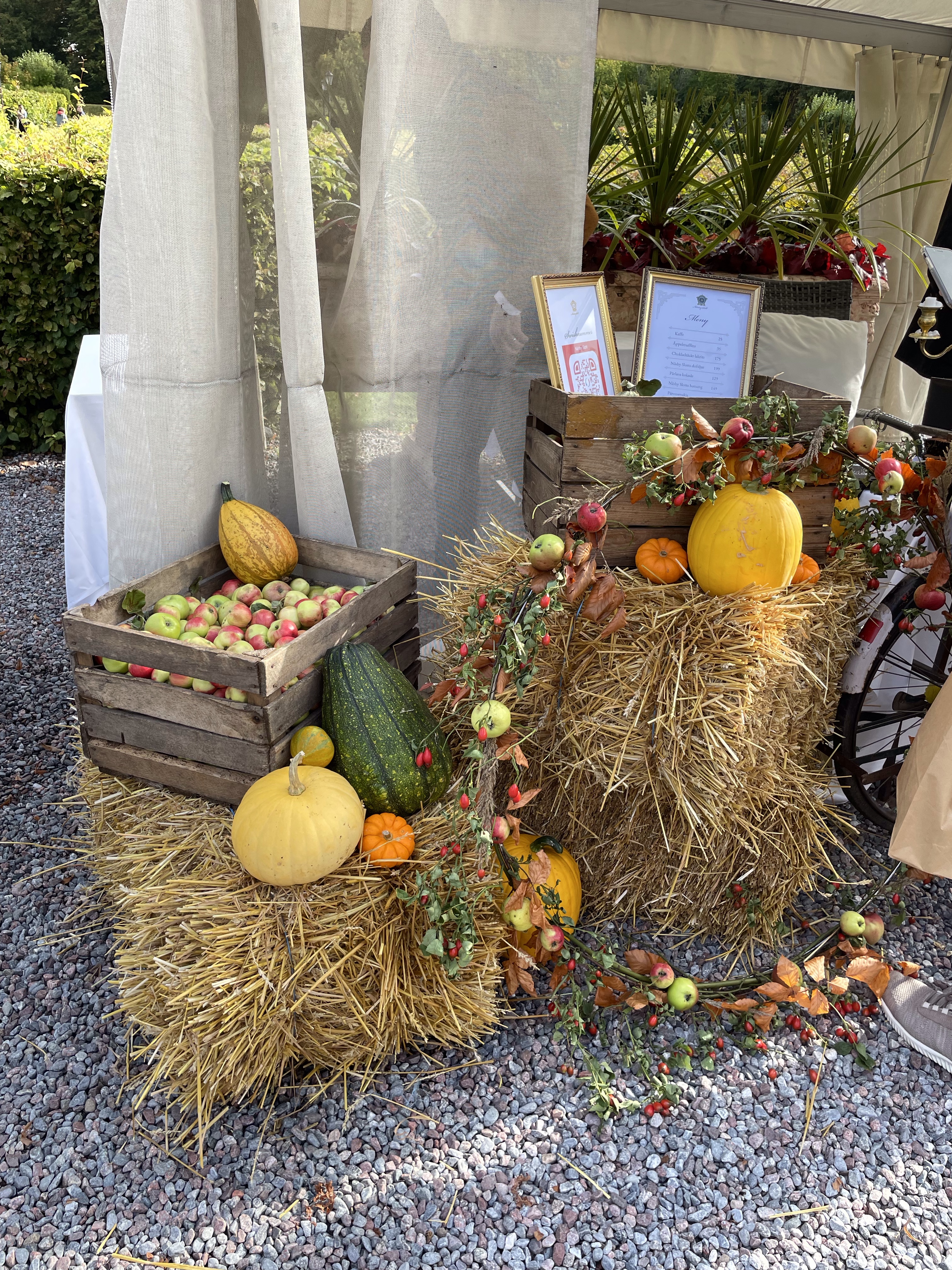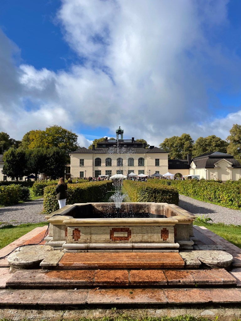 Idag var det höstmarknad på Näsby Slott så vi bestämde oss för att åka dit. Vi var glada att vi var tidiga för det var inte jättelätt att hitta parkering, men vi lyckades till slut. Vi parkerade på taket på parkeringsgaraget, som mannen berättar att det har varit en pool en gång, så det borde varit lätt att slippa gräva ut vid bygget.