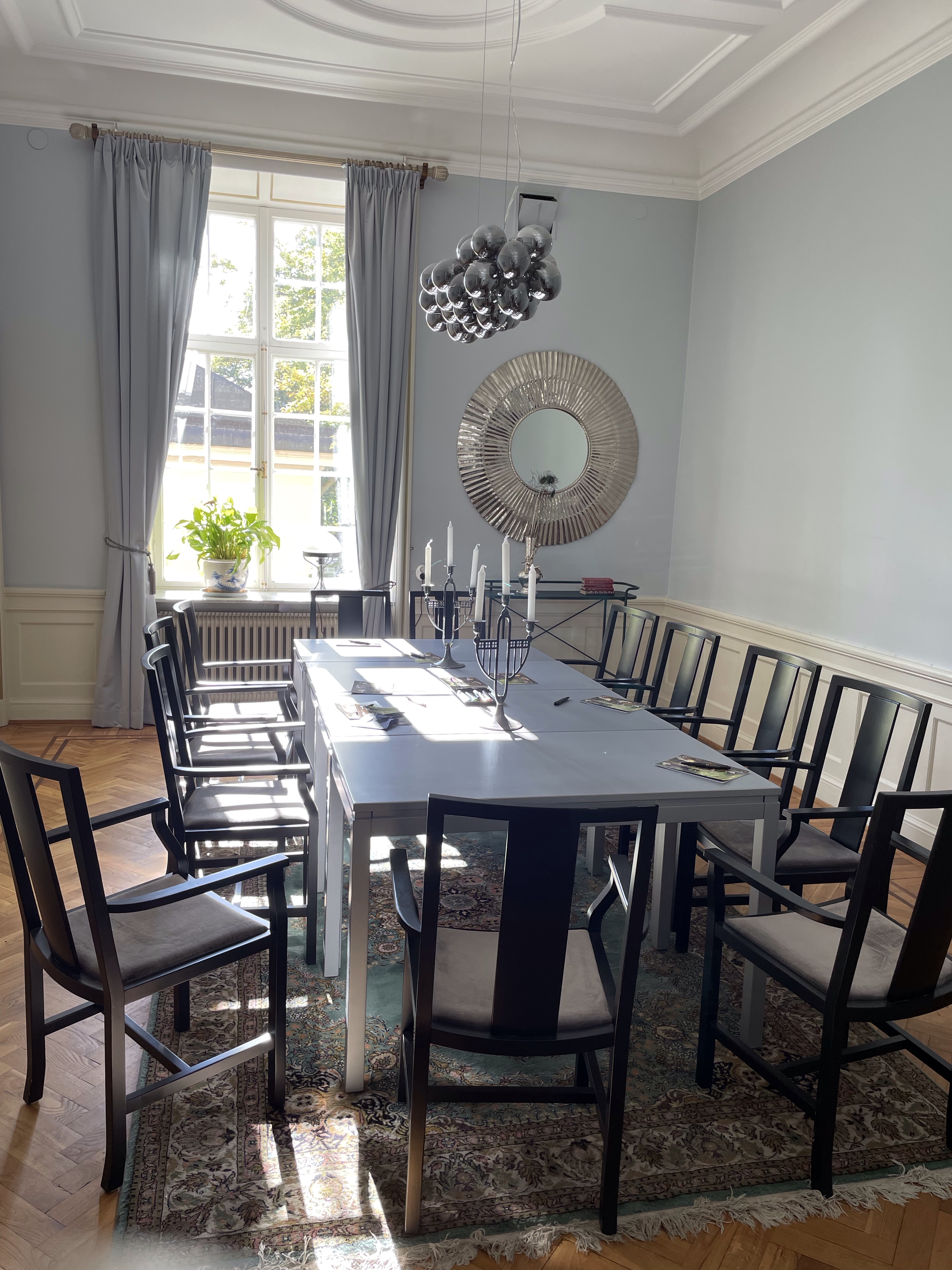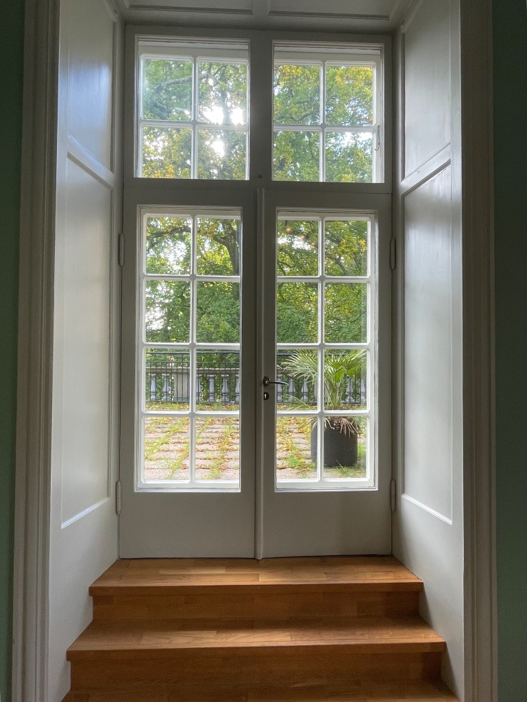 Av respekt tog jag inte kort på läckande stuprännor som förstör fasaden och inte heller buskarna som de inte klippt enligt instruktionsboken. Mannen saknade även rosen som Carl Robert Lamms fru Dora planterat som man inte fick ta bort… Jag fick höra många intressanta historier under dagen.