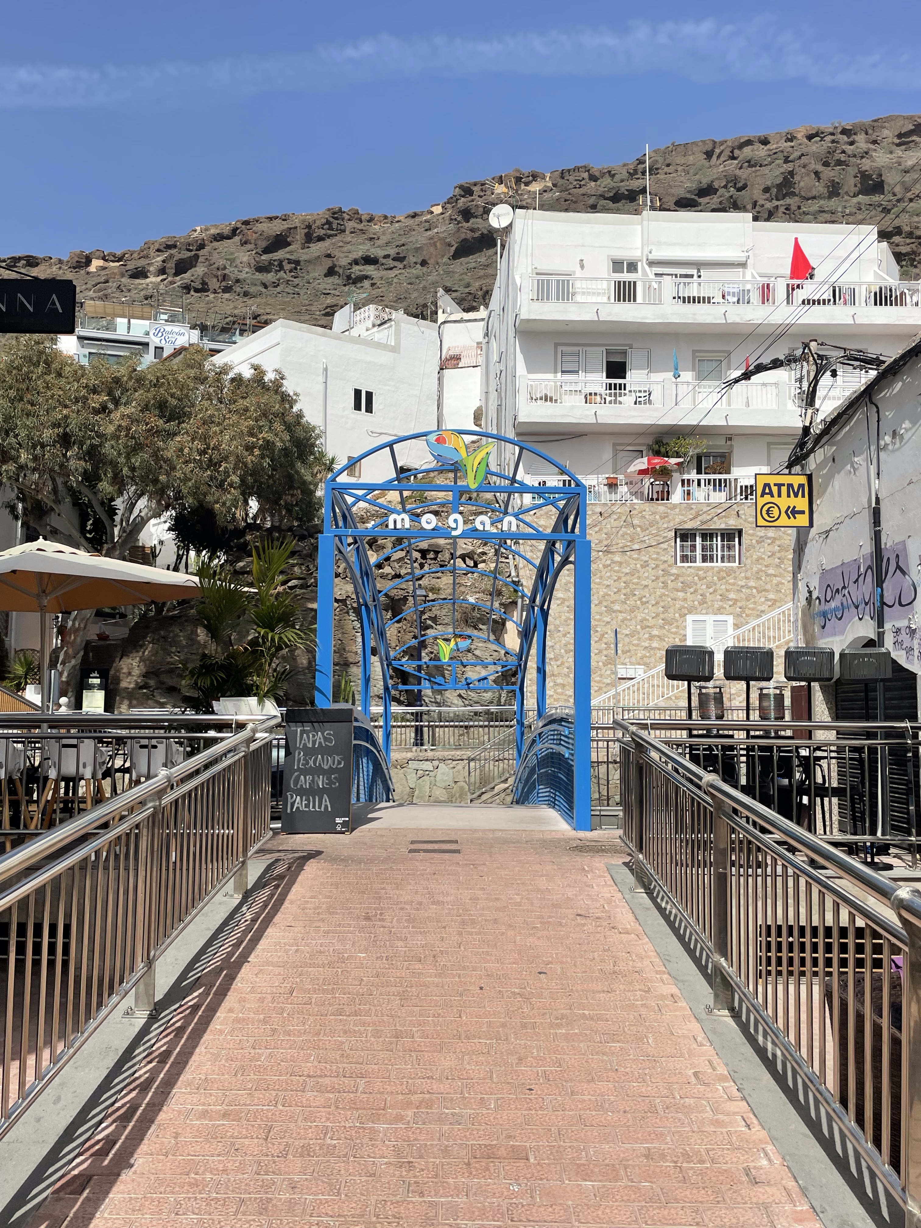 Vi startade med Puerto de Mogan, där 3 i sällskapet varit för 18 år sedan när allt var stängt (runt jul) och ville se platsen igen. Vi kom fram och letade parkering. Vad betyder alla skyltar? Vart får vi parkera? Blåa linjer, gula och vita linjer? Till slut parkerade vi en bit ifrån och gick in mot hamnen. Vi tog en öl (chauffören fick vatten) och strosade runt lite.