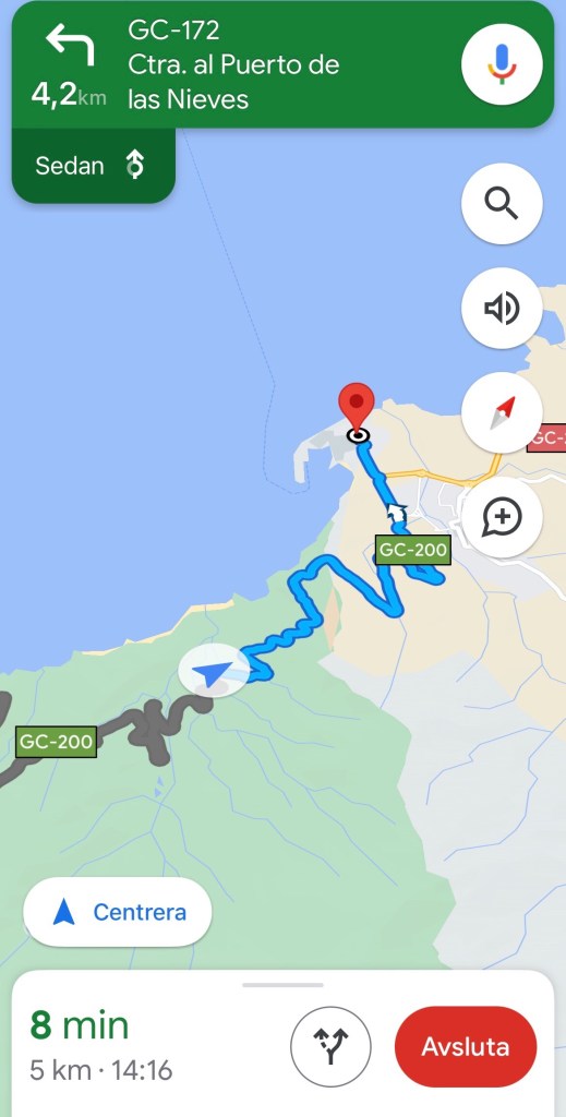 Vi åkte vidare, ställde in gps:en på Puerto de las Nieves.