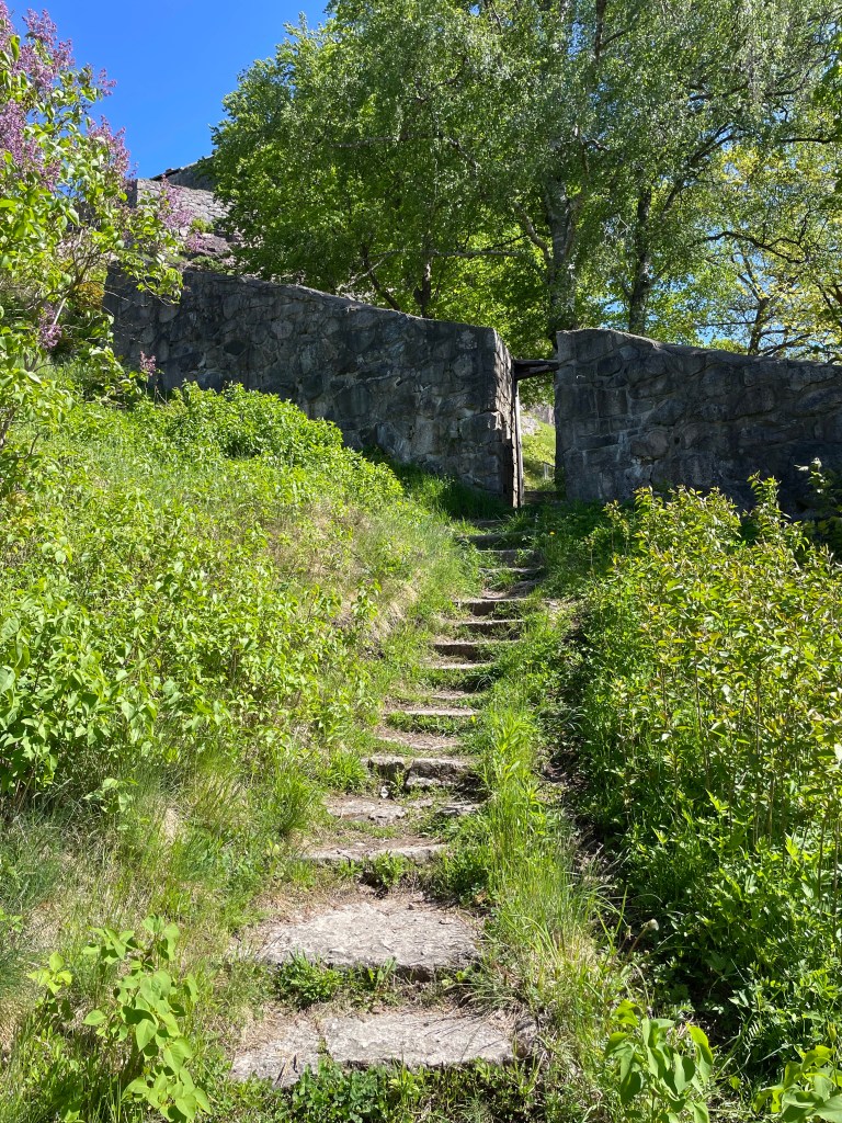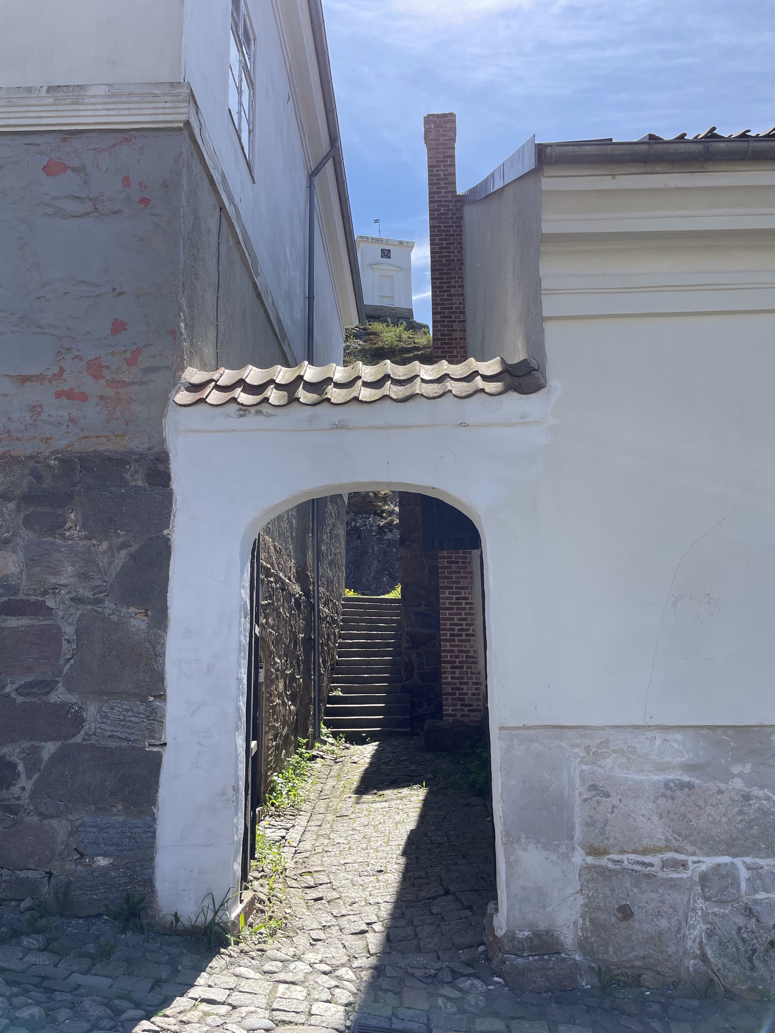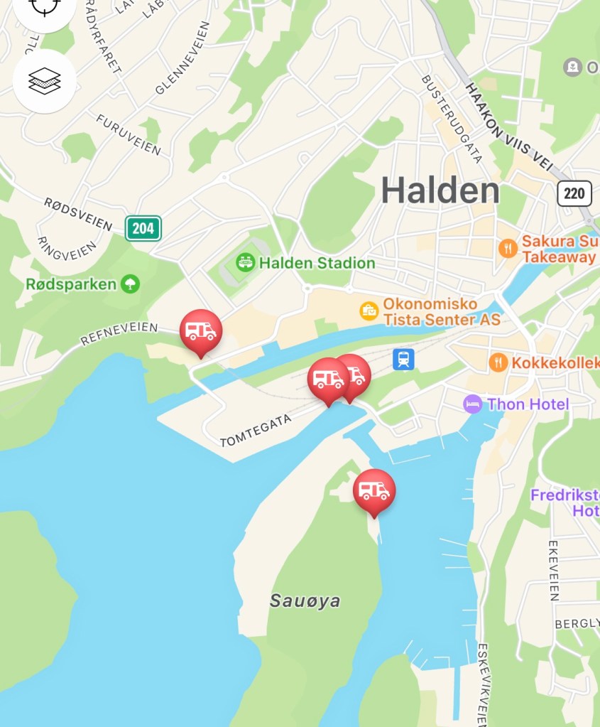Vi har möjlighet att parkera på världens bästa garageuppfart, men det finns ställplatser i byn. Jag kan tänka mig att det är häftigt att titta upp mot fästningen på kvällen. Ser i kommentarer att det kan vara mycket bilar och oljud på nätterna, så öronproppar är nog att rekommendera.
