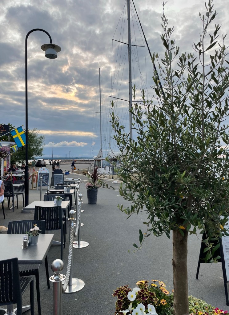 När vi lämnade Väsby hade vi 29 grader och det var ”aphett”. När vi stannar i Gränna har temperaturen sjunkit 10 grader och vi fick frysa för första gången på länge. Insåg att många går med tjocka tröjor och det har vi inte packat ner.