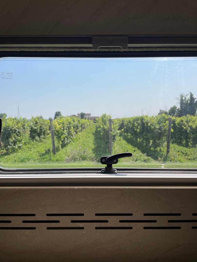 Äntligen skulle jag få komma till en vingård. Vi har köpt en app som heter Agricamper och där hittar man enkelt gårdar att övernatta med husbilen. I de flesta fall gratis. De förväntar sig dock att man köper något från deras gård.