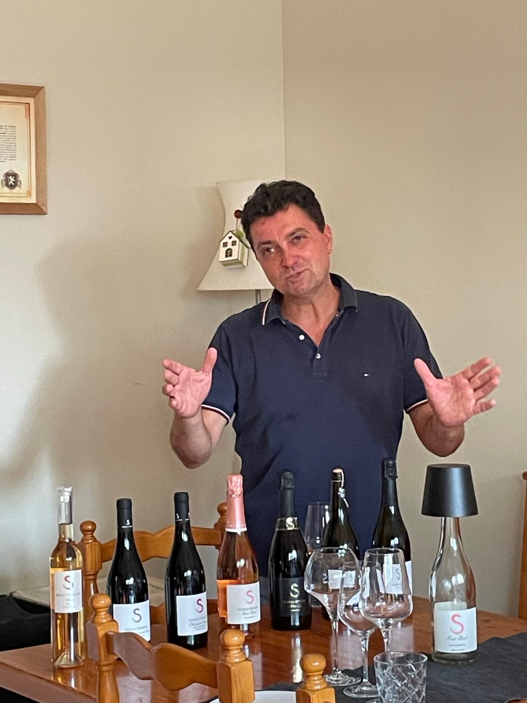 Vi möts av världens trevligaste ägare Pier. Han skrattar när vi gör vårat besök på årets varmaste dag. Vi önskar el till AC:n och det är inga problem. Pier visar stor gästfrihet och visar oss runt. Han visar in oss i provningsrummet där det bara är 22 grader och det känns svalt. Pier bjuder på Prosecco Rosé som välkomstdrink. Det här börjar bra!