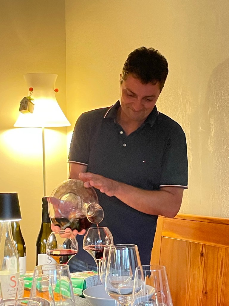 Han har rätt! Så mycket skratt och så goda viner och generöst med chark och ost. Ja det var väldigt generöst med vin också. Vi hade så trevligt så vi ville aldrig sluta. Vi började runt 17 och sista glaset drack vi nog vid 20:30-21.