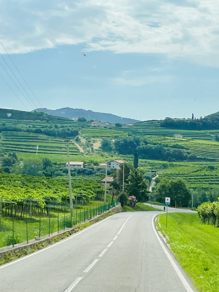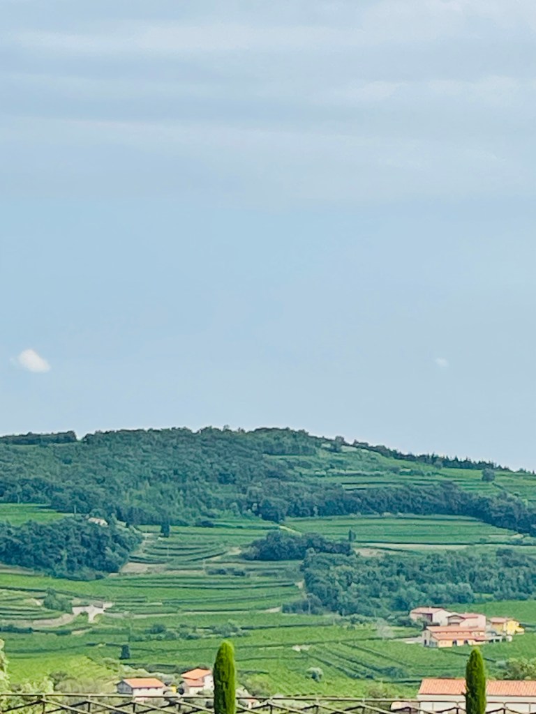 Sedan rullar vi ner mot Negrar. Utsikten är fantastisk. Jag har svårt att tänka mig att vi dricker så mycket vin hemma som kommer härifrån.