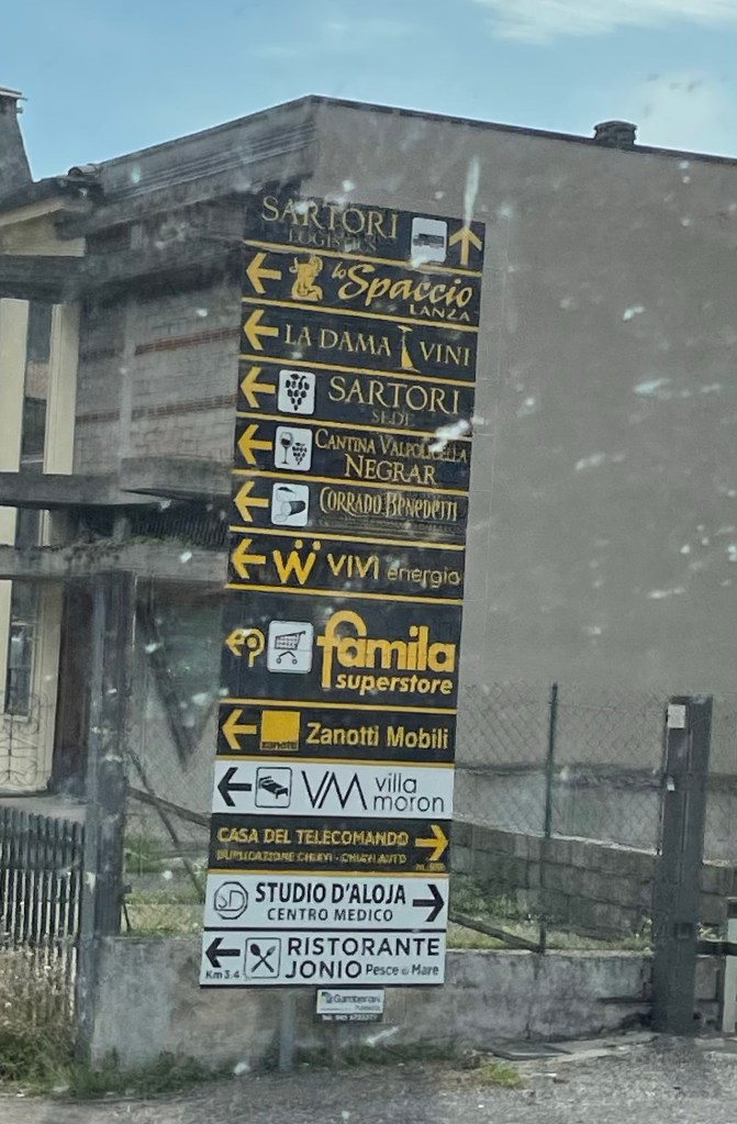 Vi besöker Cantina Valpolicella och har ställt in GPS:en för att hitta hit. Det är väldigt trångt på parkeringen, så jag gick in och frågade om vi kunde parkera framför entrén och det gick bra.