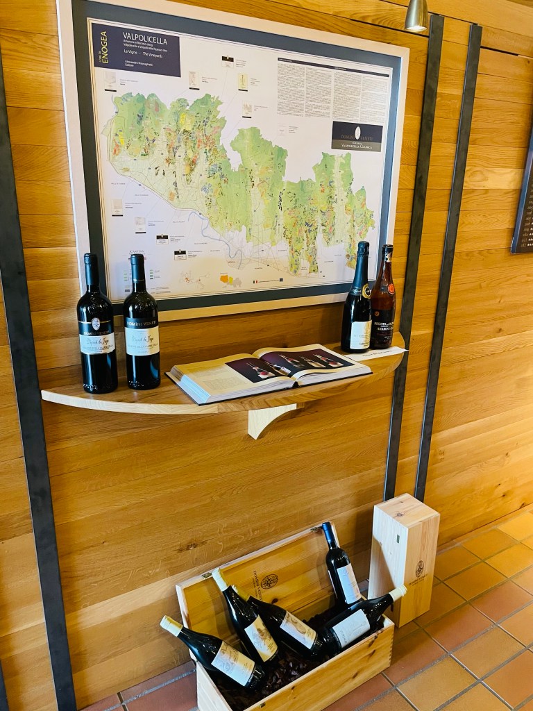 Vi provar viner och handlar. Deras Amarone var riktigt bra och vi lyxar till det med att köpa med några flaskor. Råkade visst bli Ripasso och Valpolicella Classico Superiore också.