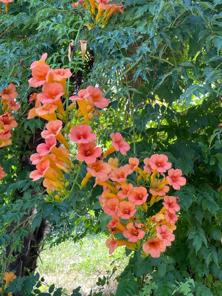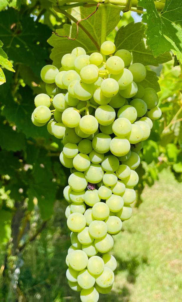 Alltså, sitta och titta ut över vinstockar, fruktträd, hästar och känna en doft av kobajs lite då och då. Få maten och vinet från gården serverad vid husbilen. Det kan vi leva länge på.