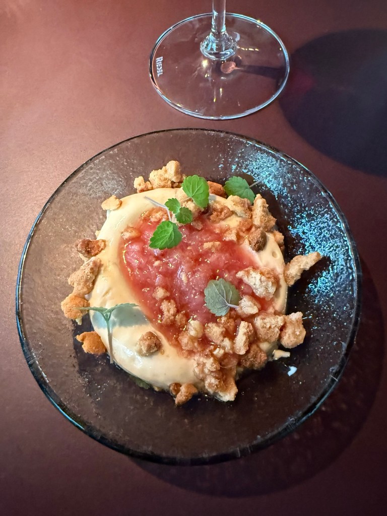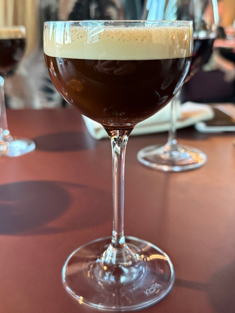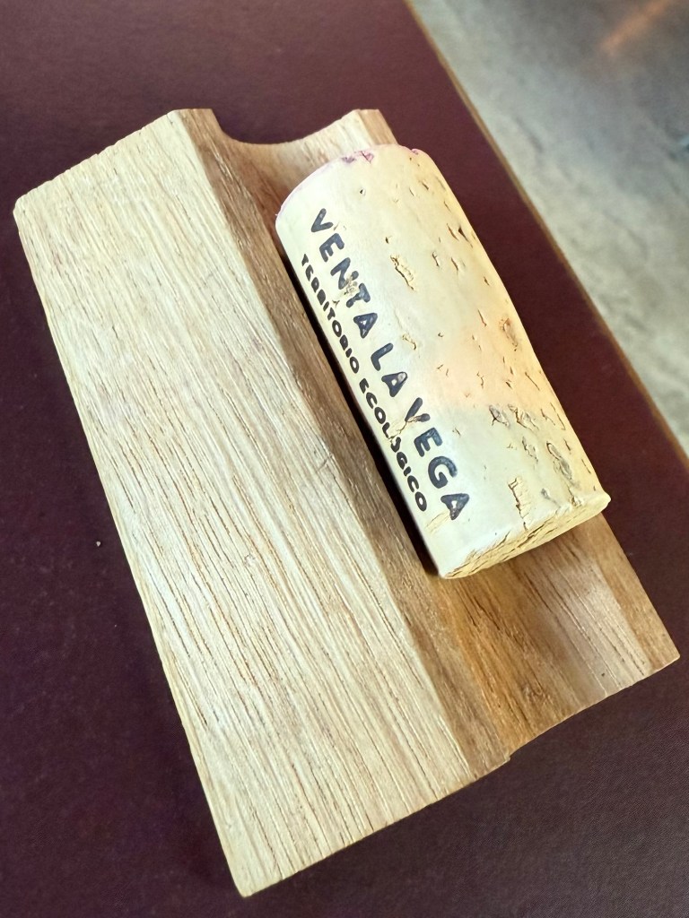 Vi startade med ett glas vin och till förrätten och varmrätten drack Vi samma rödvin. Jag har aldrig varit med om att de lägger fram korken så här på bordet, men det kändes trevligt.