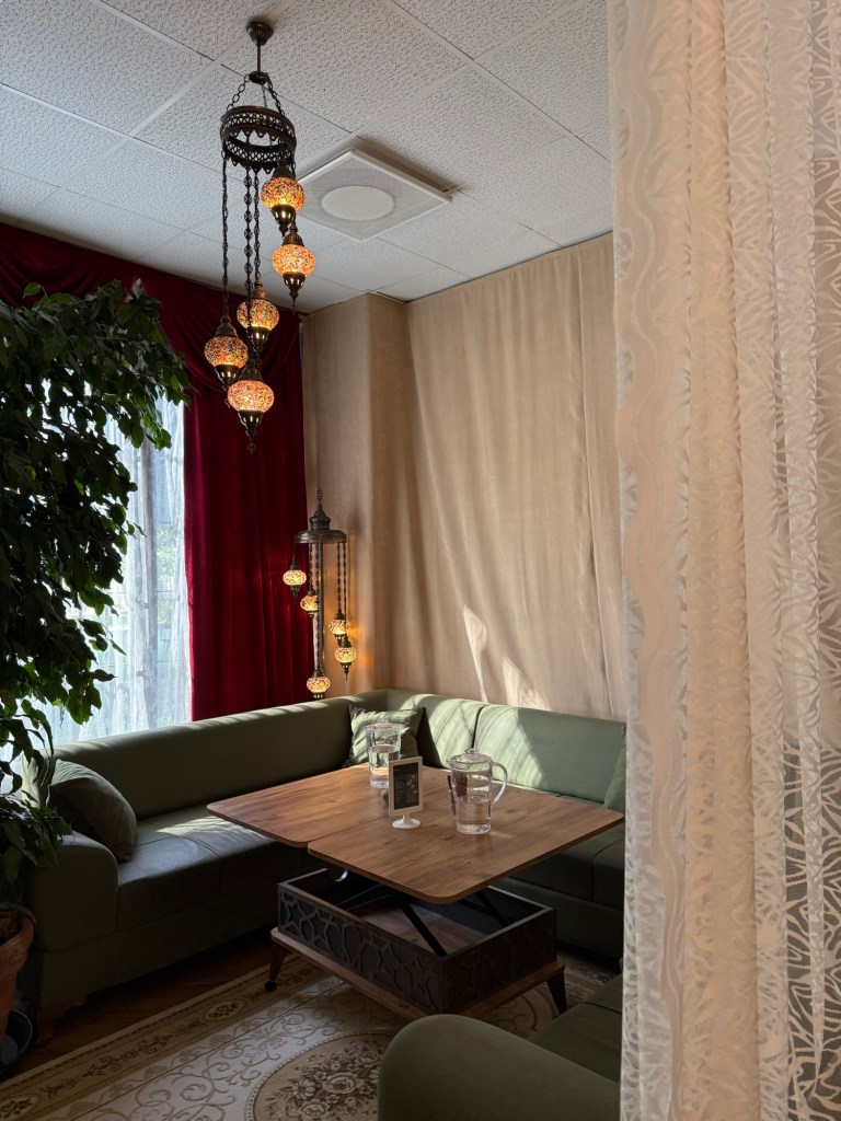 Efter hamambadet satt jag i soffan i loungen med en kopp te och ett glas vatten. Här spelades avkopplande musik och det var lugnt och skönt. Jag kan tänka mig att det är annorlunda här vid tillfällen som möhippor, svensexor eller firmafester. Det var en av anledningarna att jag valde att besöka Oriental Hamam en vardagskväll.