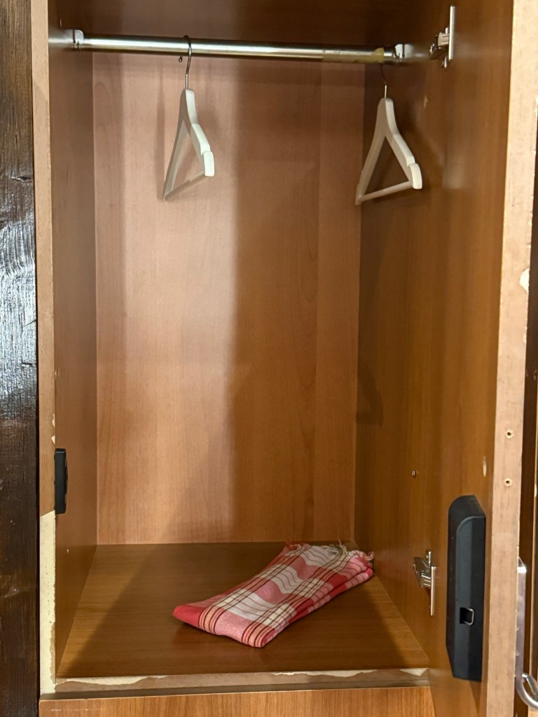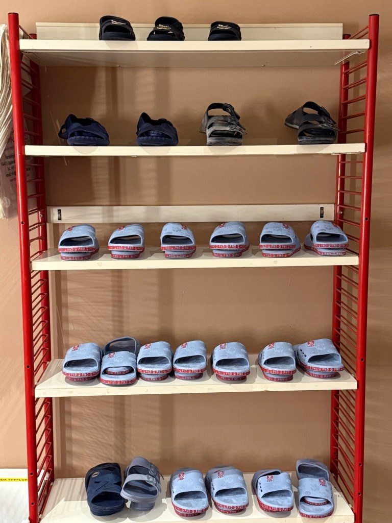 Jag blir trevligt bemött och visad till omklädningsrummet. Här tar jag på mig bikini och lånar handduk och tofflor.