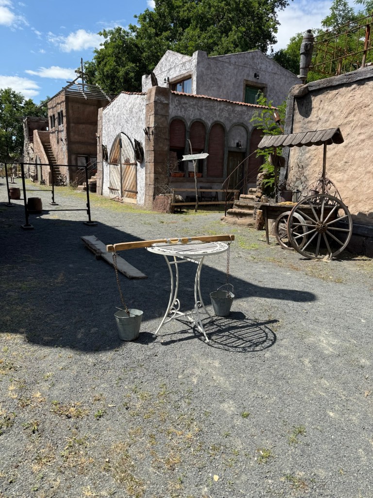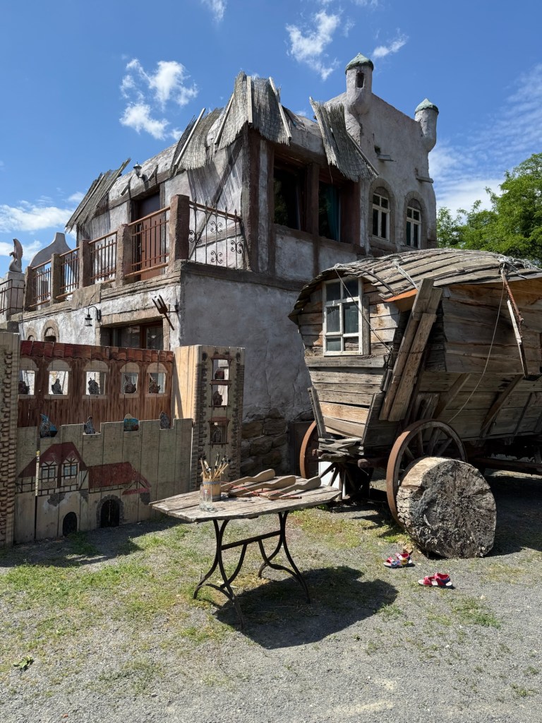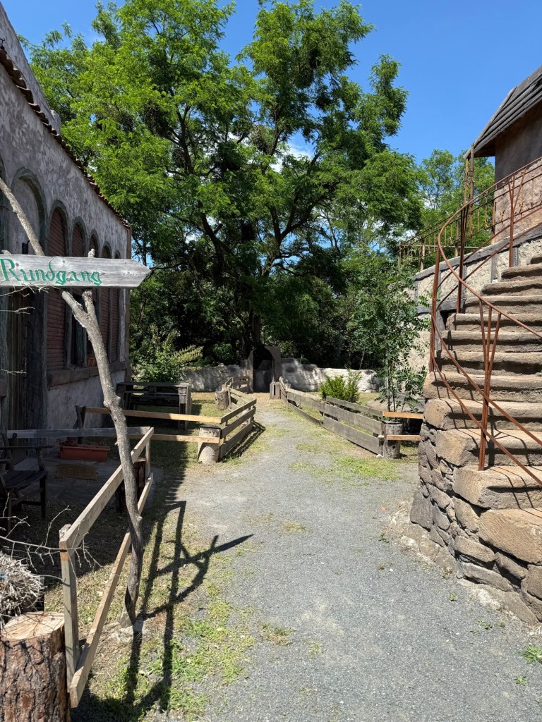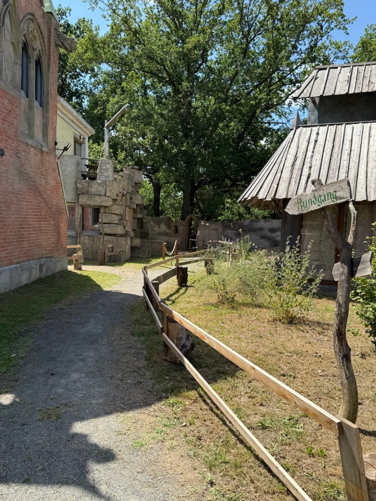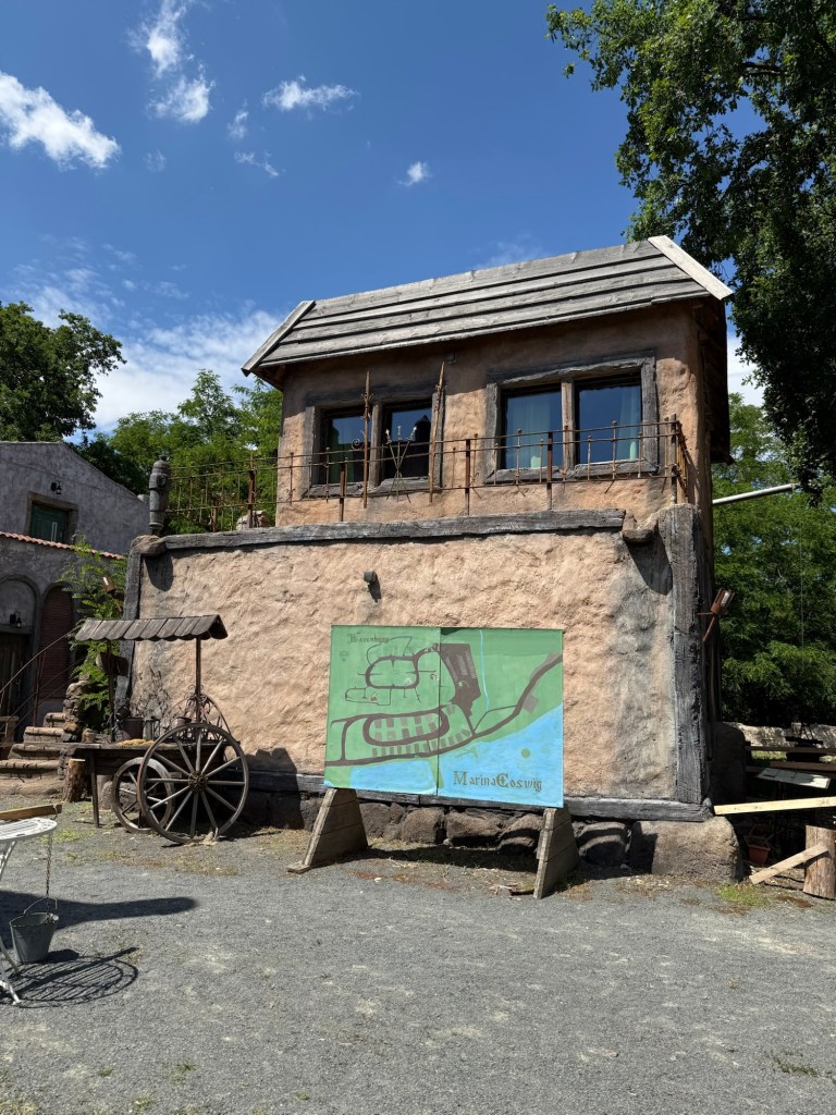 Vi tar en rundtur i området och kan tänka mig att det är full fart här med fester, kalas eller olika tillställningar ibland. Just nu är det jättelugnt. Här kan lag tänka mig att en del kör 5 kamp, typ Gröna Lund. Det känns anpassat för både barn och vuxna. Besöka Havenburg känns som att kliva in i en annan värld eller en filminspelning.