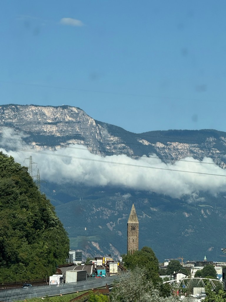 Mellan Bolzano och Trento är otroligt många lastbilar ute och de ligger som på ett pärlband. Hela högerfilen är full med långtradare, men det rullar ändå på i 80. När Vi kör om så finns det fortfarande långtradare att köra om. De tar liksom aldrig slut. Det flyter ändå på bra.