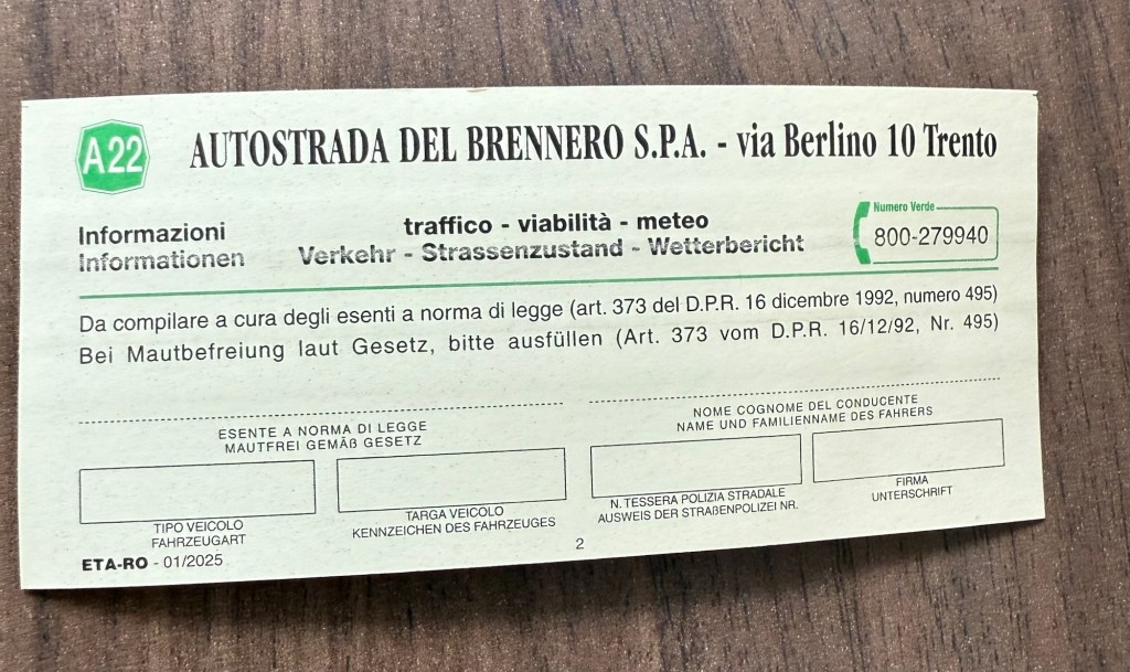 Sett i sociala medier att många undrar över denna biljett. Den sparar man och lämnar den när du åker av motorvägen och betalar. Man behöver inte fylla i rutorna. Vi betalade 17,40€ för denna sträcka.