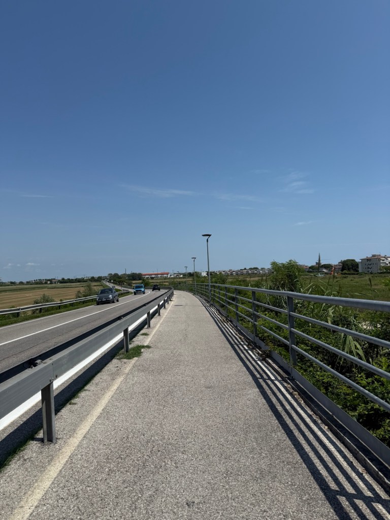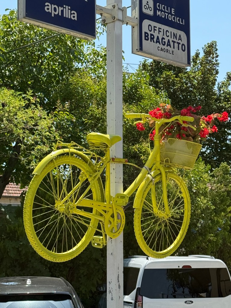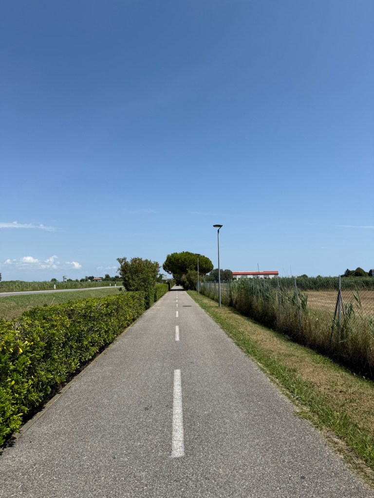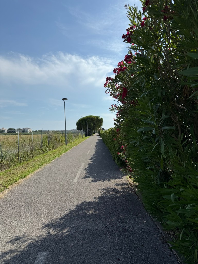 Går det där turisttåget dit? Ska vi cykla? Vi beslutar oss för att gå till Caorle för då kan Vi stanna och ta något att dricka på vägen. Sedan kan Vi ju ta Taxi hem.