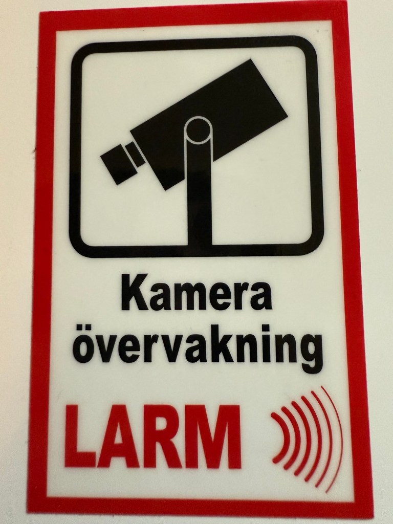 Vi har skyltat att Vi har kameraövervakning runt om husbilen och även på takluckan.