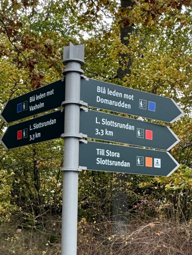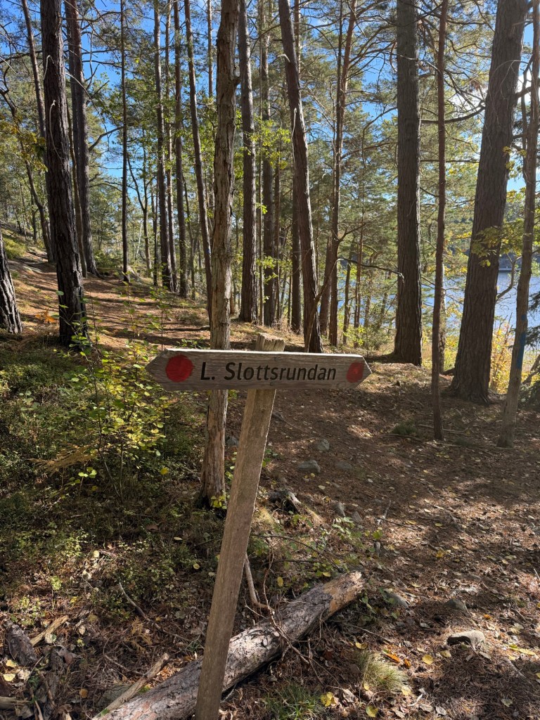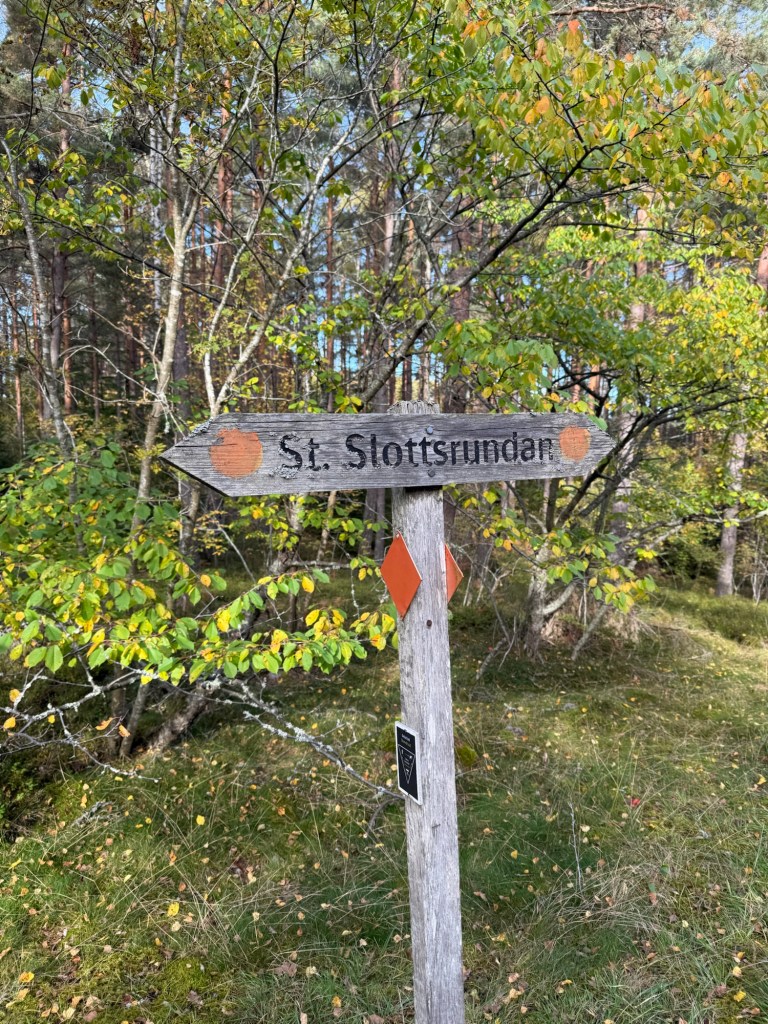 Det finns även en kortare runda, Lilla Slottsrundan som är 3,3km. Ett tips är att inte luras av att den är kort och tro att den är lätt att promenera. Slottsrundan går i skogen och det är stenigt och rötter på många håll, så använd riktiga skor.