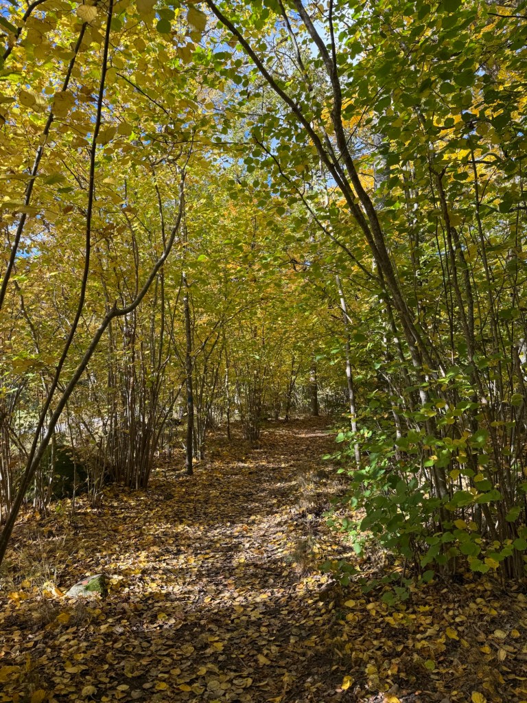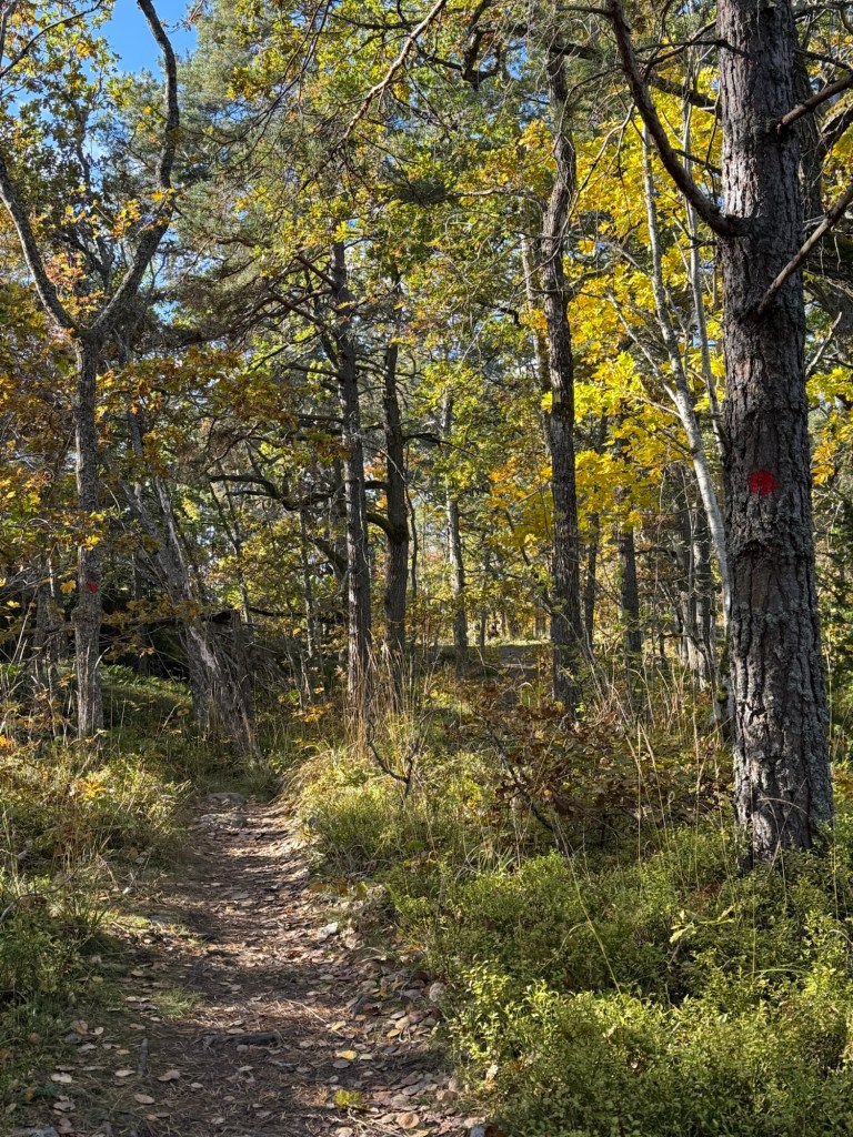Nu på hösten är det väldigt vackra färger, men på vissa håll är underlaget lite lurigt när löven lägger sig så man inte ser rötter och stenar.