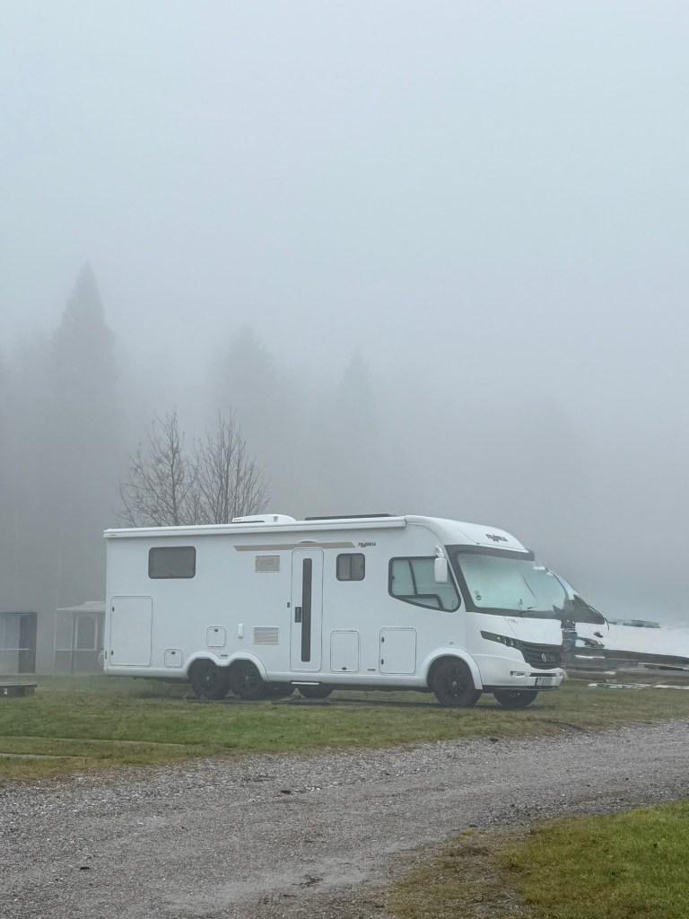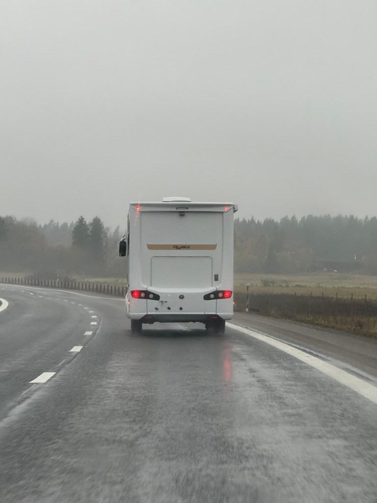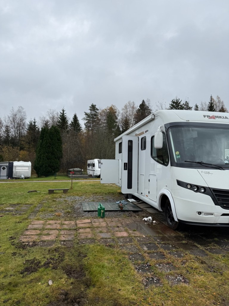 Vi hade bestämt att i år sätter Vi inte på några vinterdäck på husbilen. Även om bilen är vinterisolerad så är det inte alltid lätt att ta sig fram i vinterväglag. Tidigare år har Vi även känt att dagarna blir så korta, så om Vi åker efter jobbet på fredagen, så är det kolsvart när man kommer fram och svårt att se vart man ska parkera. Så i år åker Vi så länge Vi kan och sedan får Vi helt enkelt stanna hemma tänkte Vi.