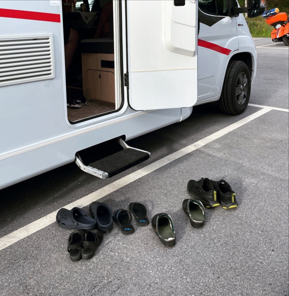Vi tar in på Campingen vi bokat och inser att platsen vi bokat var lika bra som vi önskat oss. Vi bor precis vid stranden och har en kulle som skyddar oss från väder (läs sand) och vind.