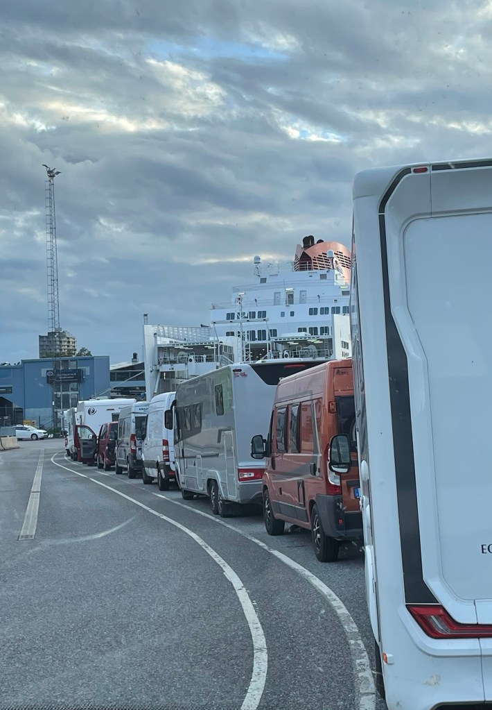 Vi kommer till färjan och trafiken flyter på riktigt bra.
