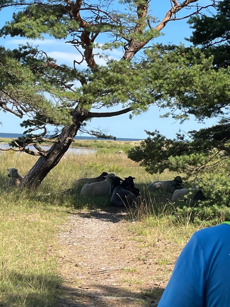 Vi rullar vidare genom Naturreservatet och åker över ett flertal färister. Det är många hönor och lamm som strosar runt här och det känns nästan som vi är på safarie. På Gotland finns inga får, bara lamm och lammungar sägs det. M