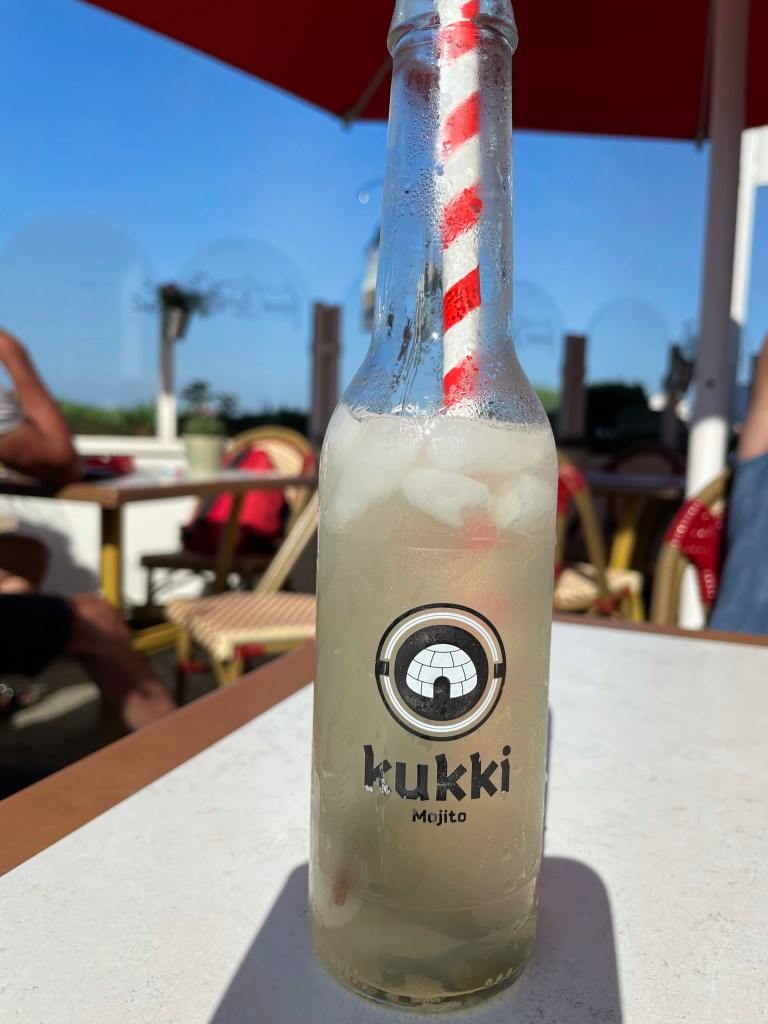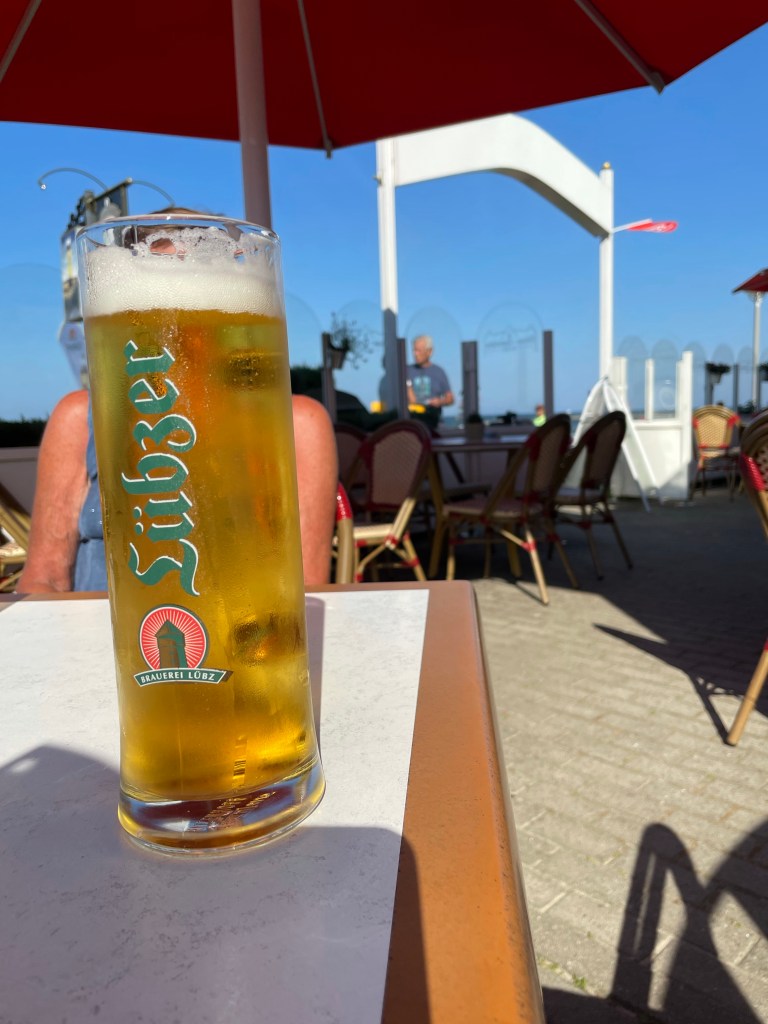 Efter alla intryck är vi hungriga och beställer en fördrink och sedan burgare med öl. Fick först burgaren och sedan fördrinken efter vi frågat. Ölen fick vi göra en ny beställning på.