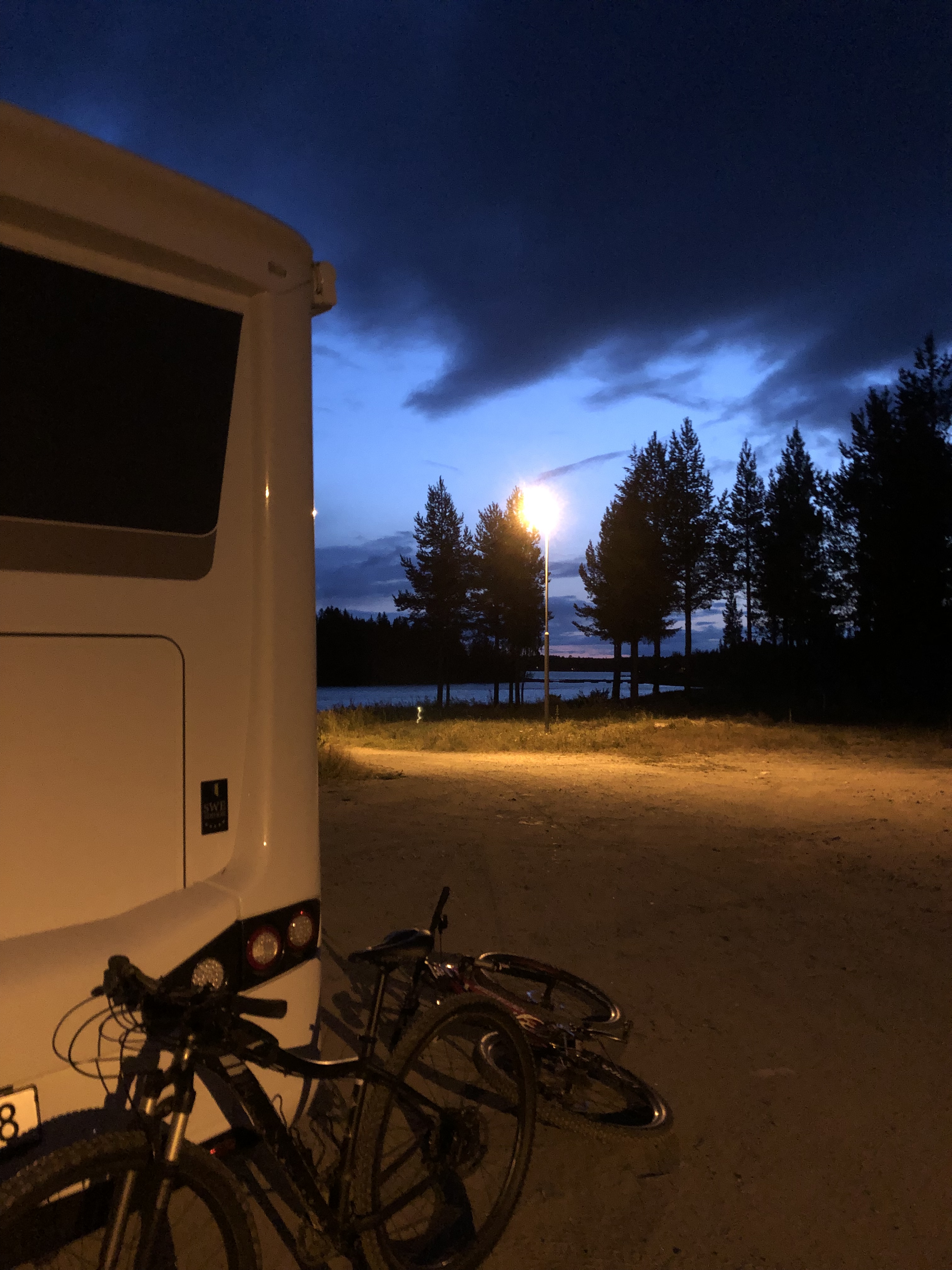 Vi kokar kaffe, badar och grillar kvällsmat. Sedan väntar vi och väntar…på att vi ska ”få” gå och lägga oss. Hur länge kan man sitta och titta på naturen och elden?