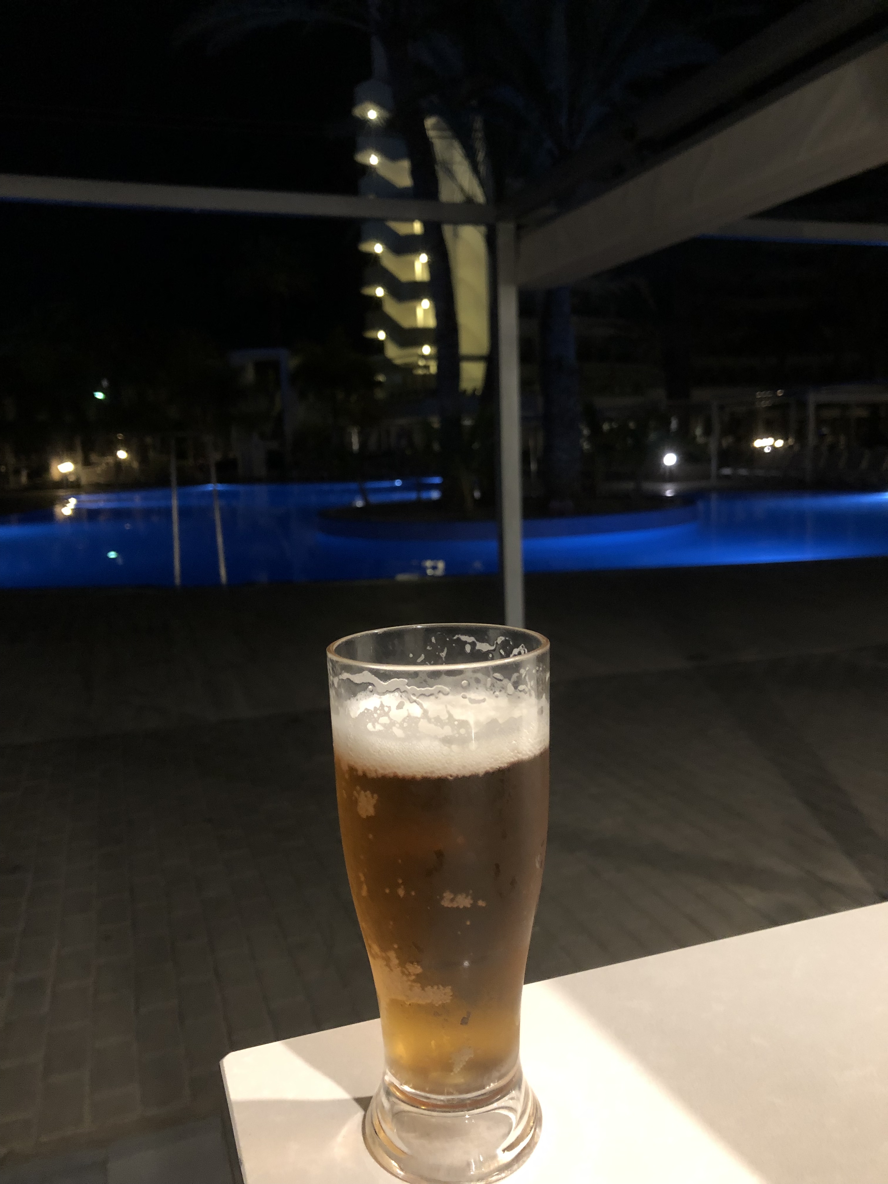 När vi kom fram till hotellet tog vi en öl i poolbaren som är öppen hela dygnet.