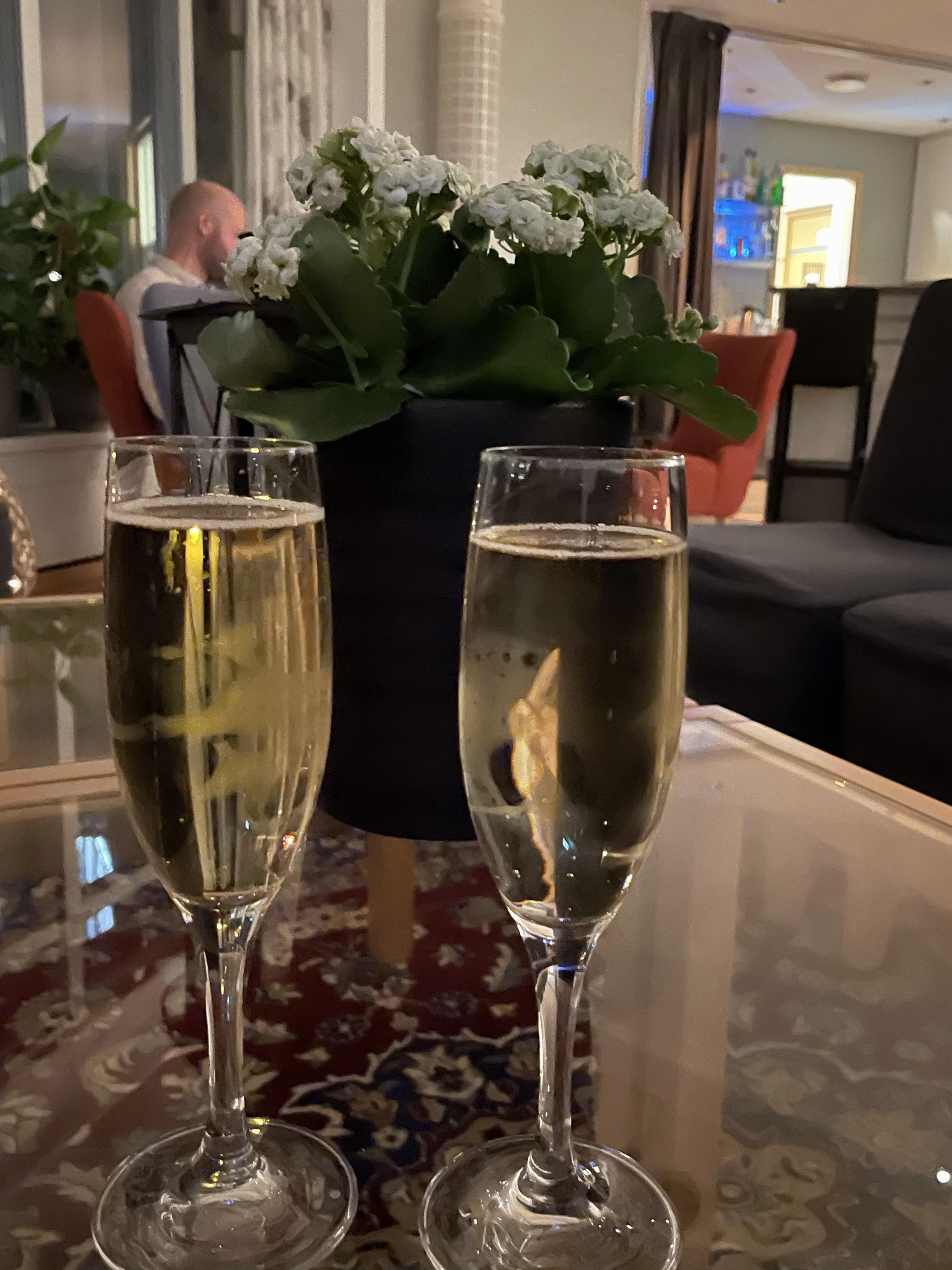 Våra rum var inte klara när vi kom fram, men vad gör väl det. Vi söker oss upp till Roof top bar och tar in en flaska bubbel.
