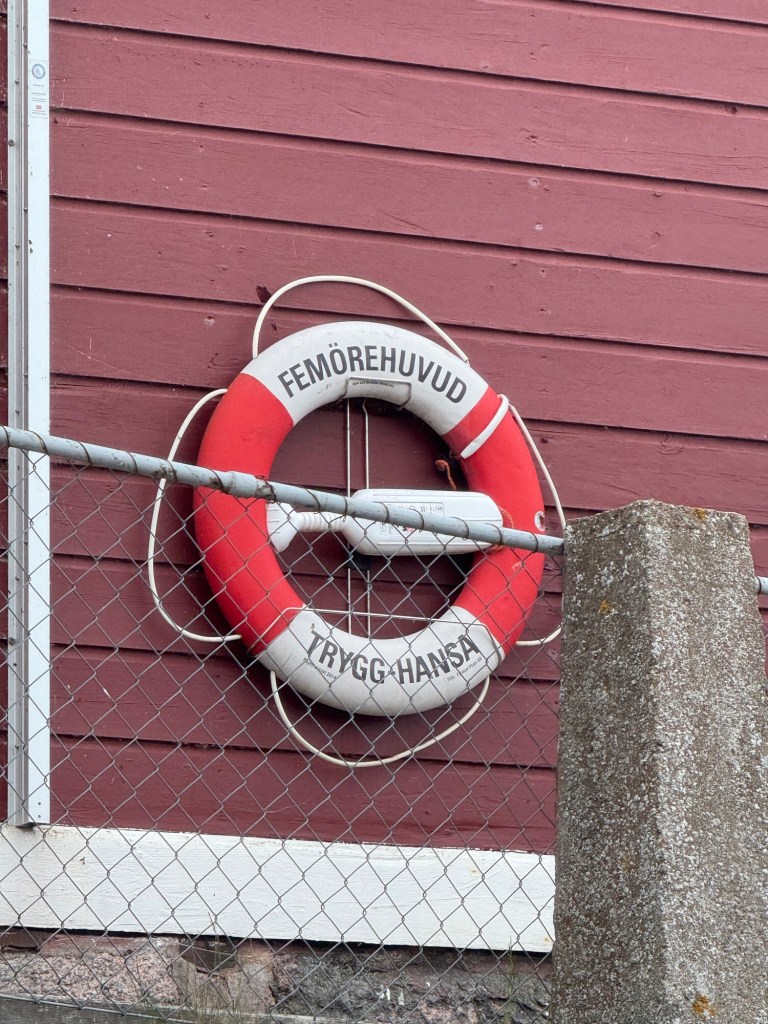 Vi har också en utsiktsplats med en kikare så vi kan se både hamnen och ut mot vattnet.