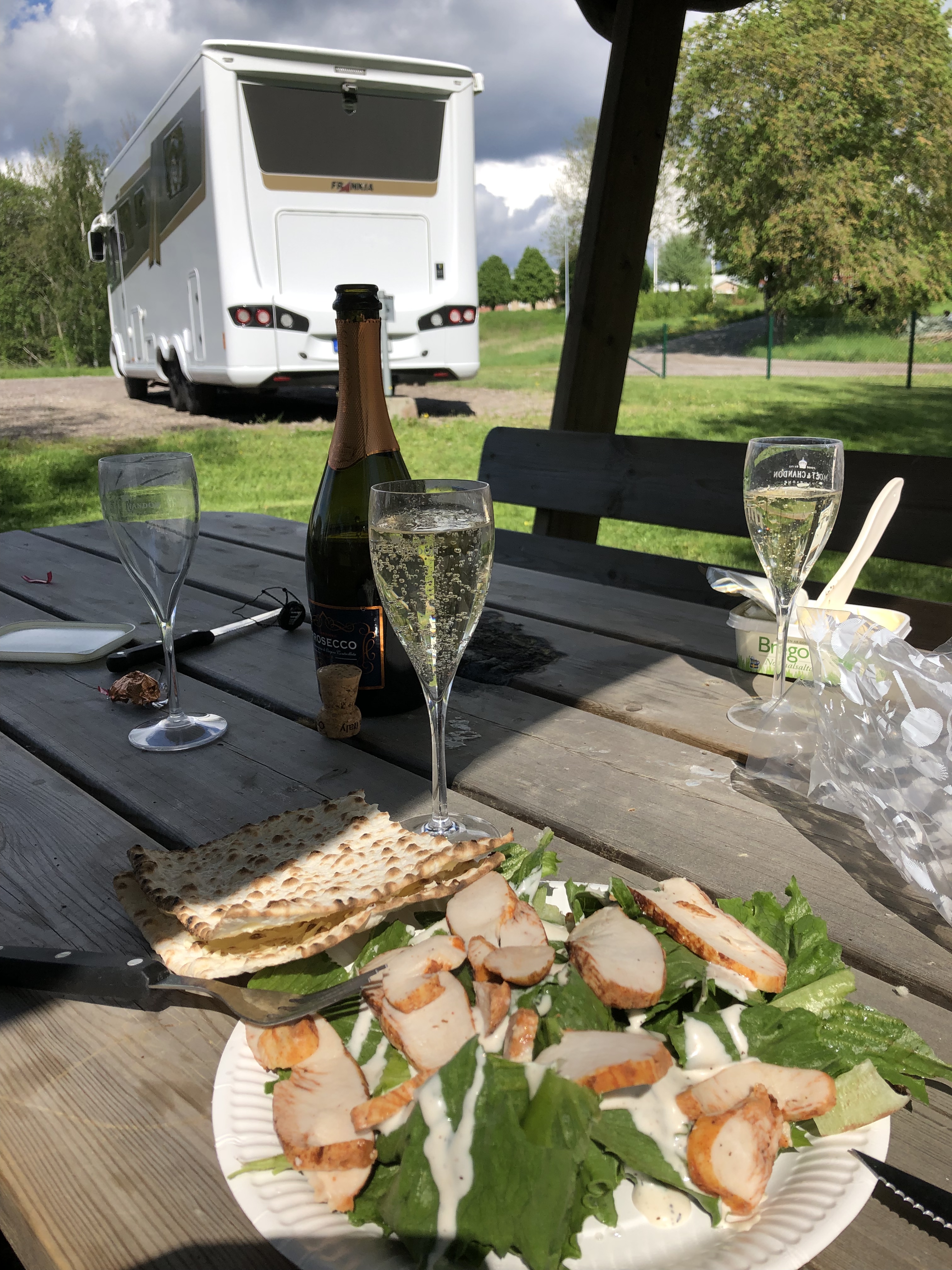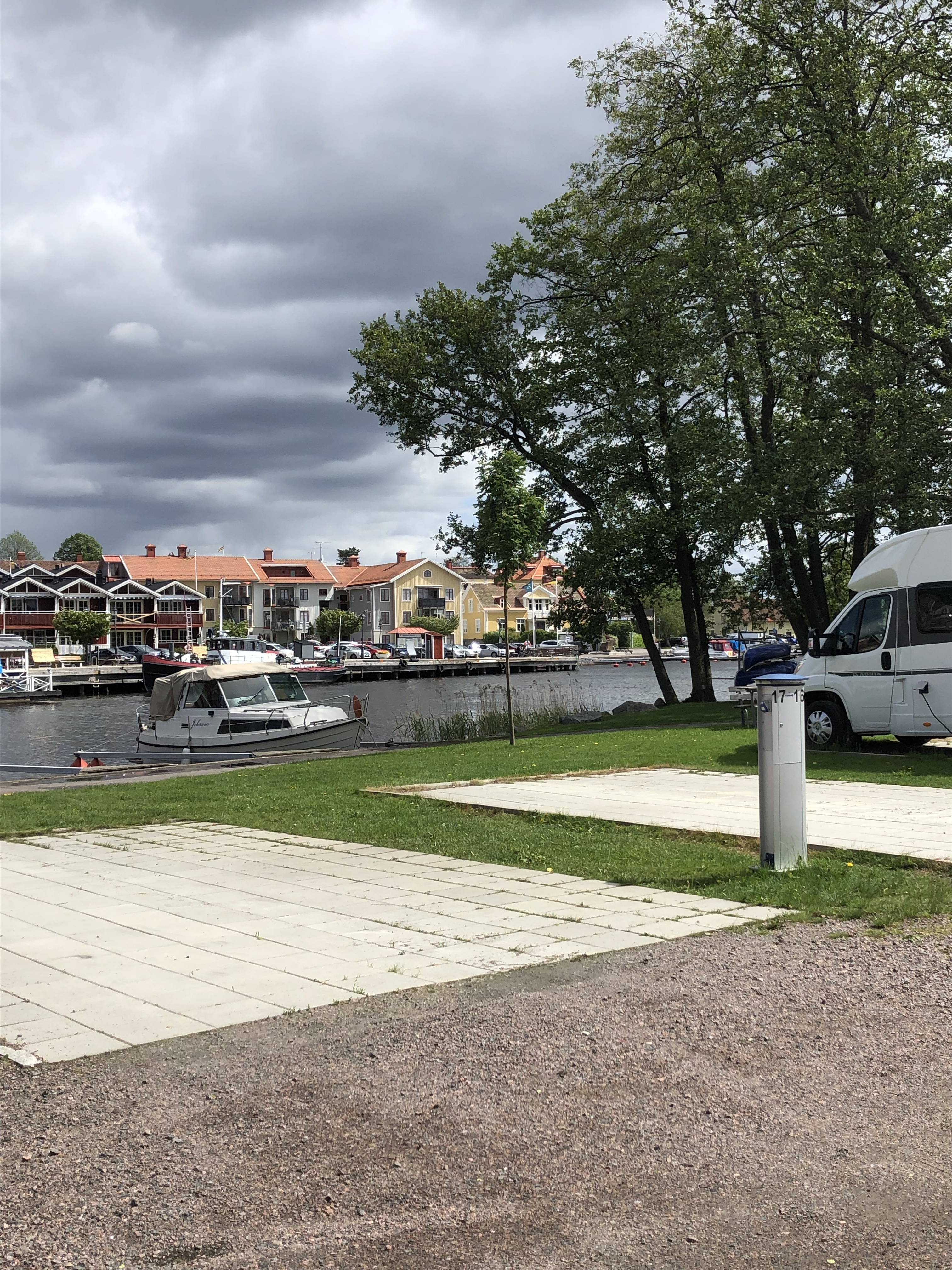 Eftersom vi lärt oss, så kommer vi till Wismar runt 11-tiden och det finns flera platser på Wohnmobilpark Westhafen som vi valt. Vi checkar in och förstår inte alla ord, men…